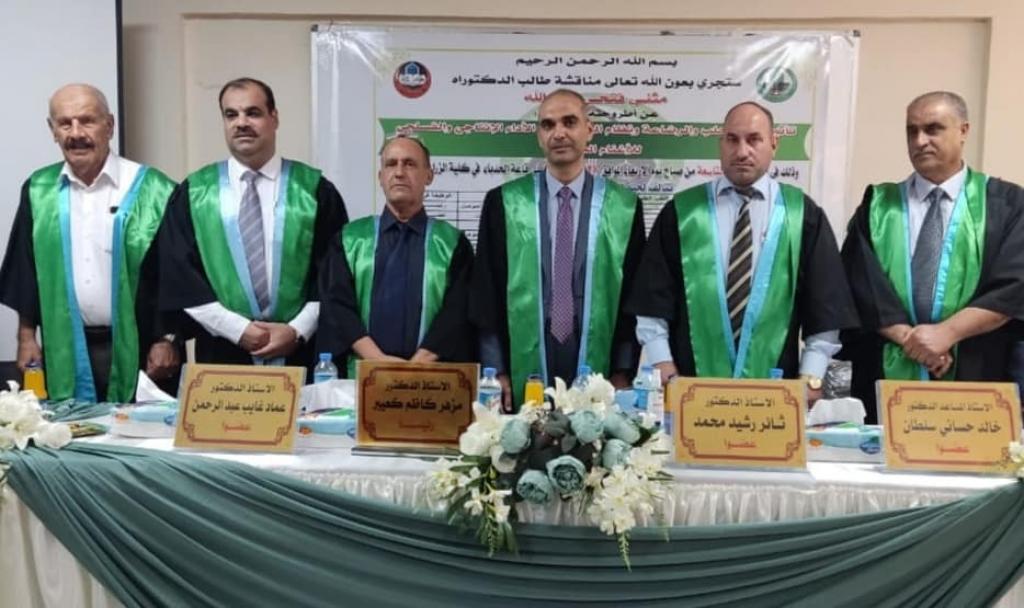 ترأس لجنة المناقشة الاستاذ الدكتور مزهر كاظم كعيبر وعضوية الأستاذ الدكتور عماد غايب عبدالرحمن والدكتور ثائر رشيد محمد والدكتور خالد حساني سلطان والدكتور عبد الناصر ذنون وبأشراف الاستاذ الدكتور عارف قاسم حسن.