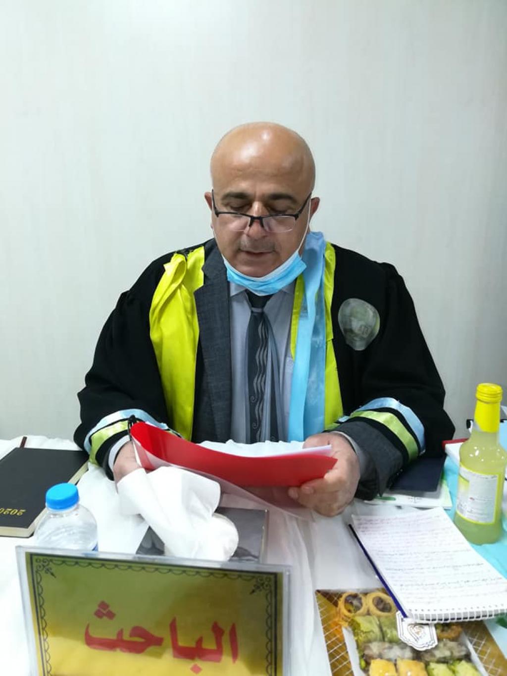 ترأس لجنة المناقشة الدكتور اجياد ثامر نايف استاذ قانون الاثبات والمرافعات المدنية المساعد رئيس فرع القانون الخاص وعضوية الدكتور صدام خزعل يحيى ، وبإشراف الدكتور علي عبيد عويد.