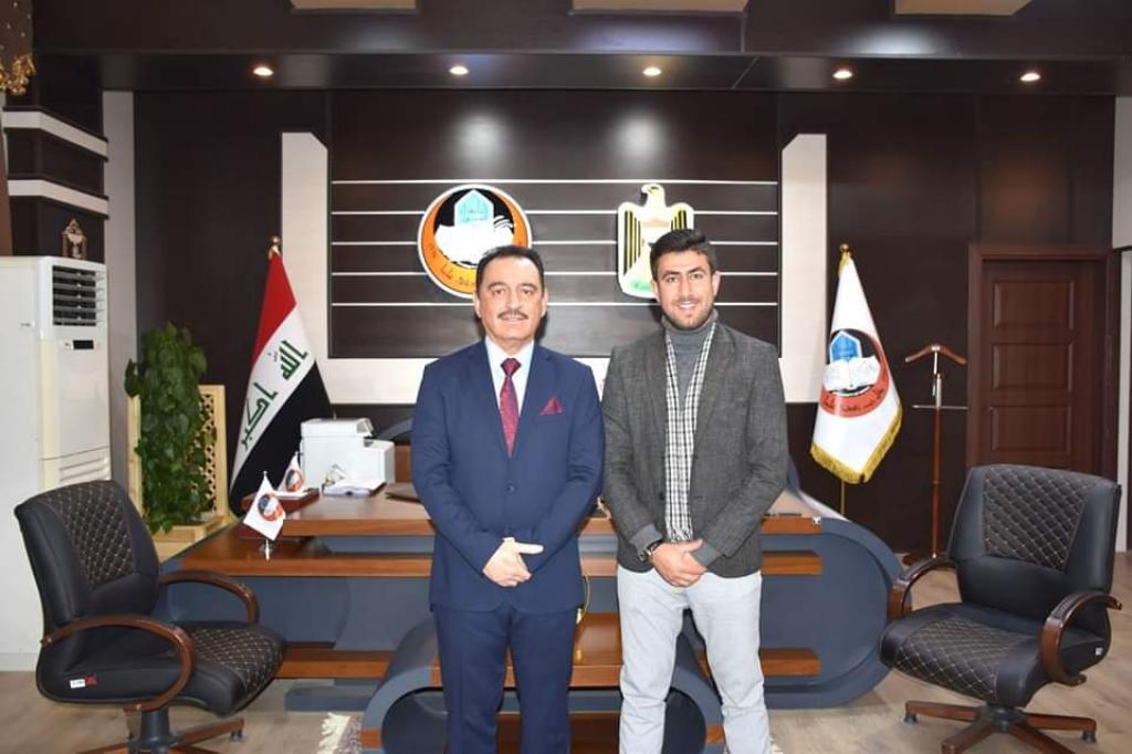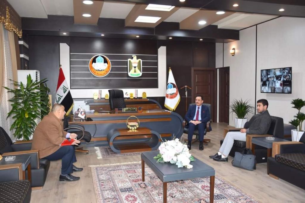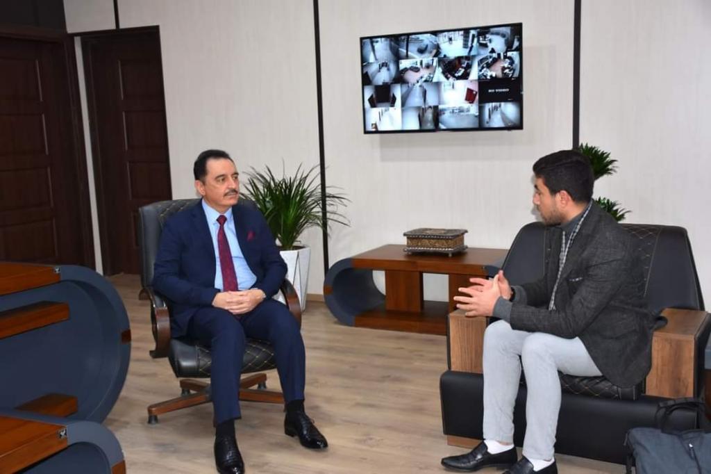 رئيس جامعة الموصل يلتقي شابا مبدعا من خريجي الجامعة ومن مؤسسي تطبيق مبهر الالكتروني