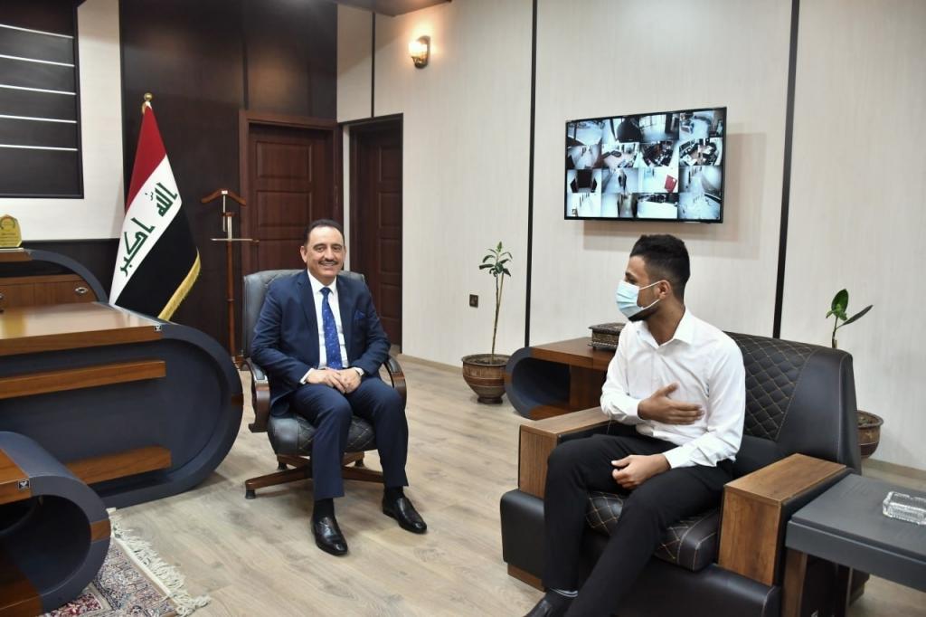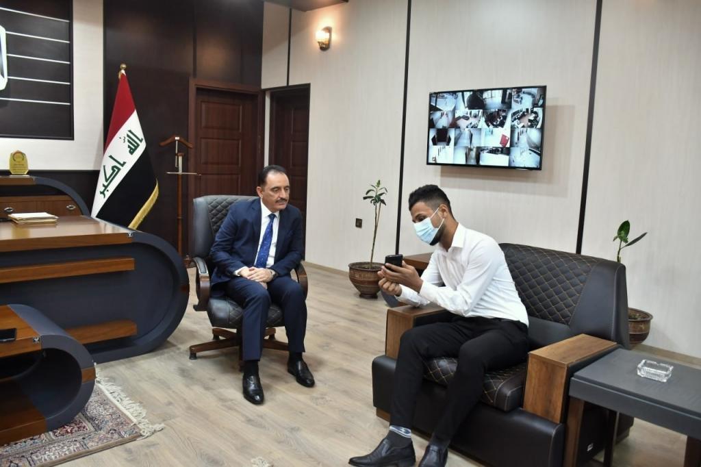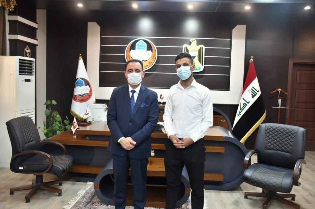 رئيس جامعة الموصل يلتقي طالباً مبدعاً عمل على تأسيس شبكة نيوتن التعليمية