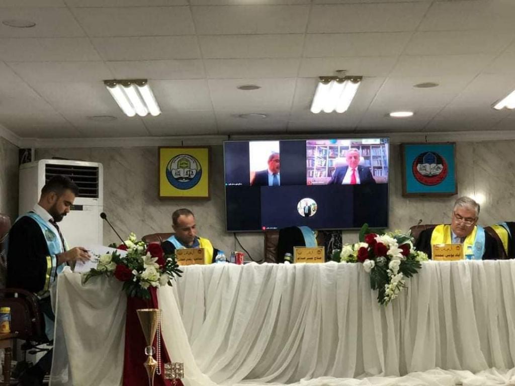 ناقشت كلية الحقوق في جامعة الموصل رسالة ماجستير بعنوان التكييف القانوني للنزاع المسلح /دراسة تطبيقية في القانون الدولي الانساني، يوم الاثنين الموافق 10 آب 2020 ، بحضور الدكتور وسام نعمت ابراهيم السعدي عميد الكلية.