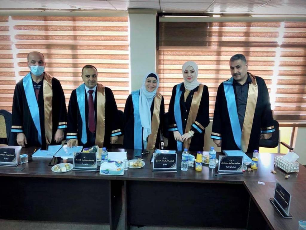 ترأس لجنة المناقشة الأستاذ الدكتور جاسم محمد جاسم وعضوية كل من الأستاذ المساعد الدكتور فاتنة محمد حسين والأستاذ المساعد الدكتور إسماعيل إبراهيم فاضل وبإشراف وعضوية الأستاذ المساعد الدكتور غانم صالح سلطان.