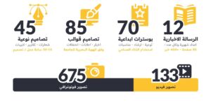 • تصميم مجموعة من الأعمال الإبداعية رقمياً من خلال تصاميم الـ INFOGRAPHIC والتي سيتم استخدامها عند توفر أي معلومات رقمية من أي قسم او كلية الجامعة.