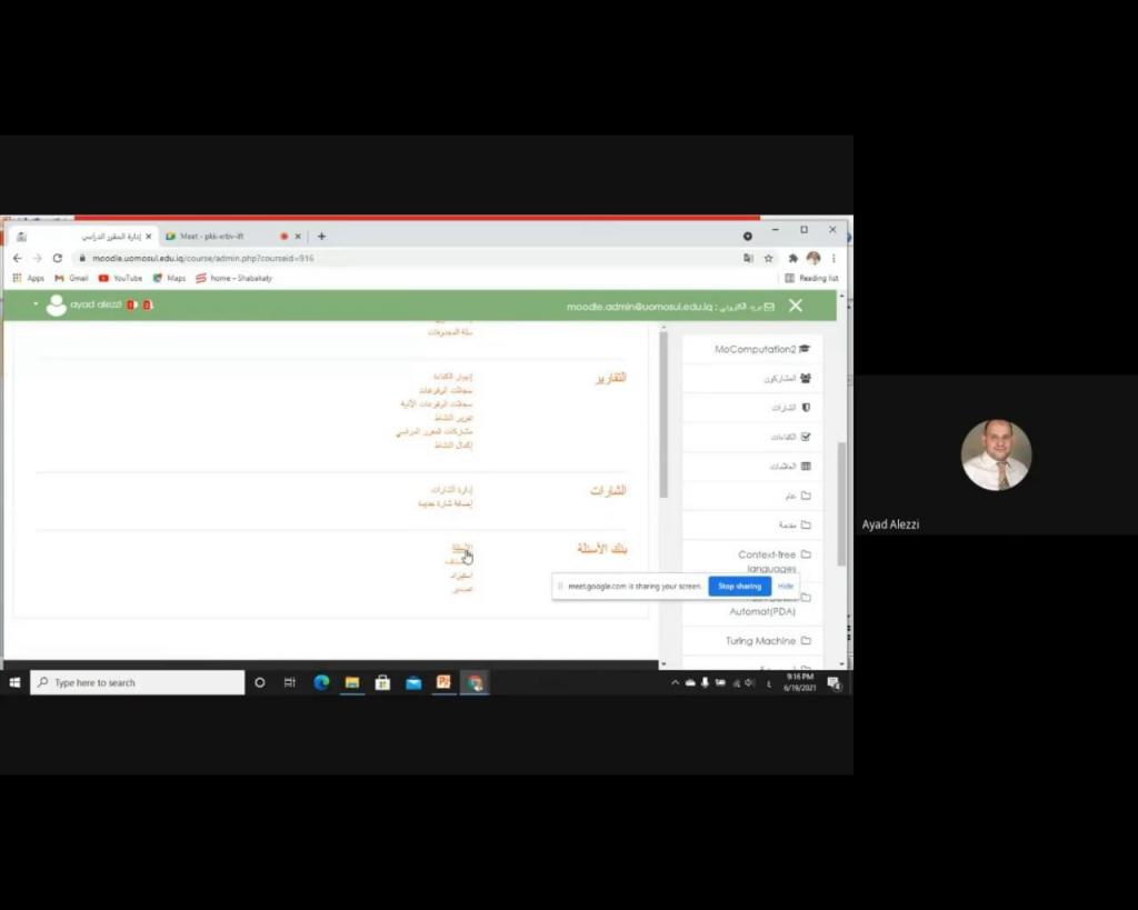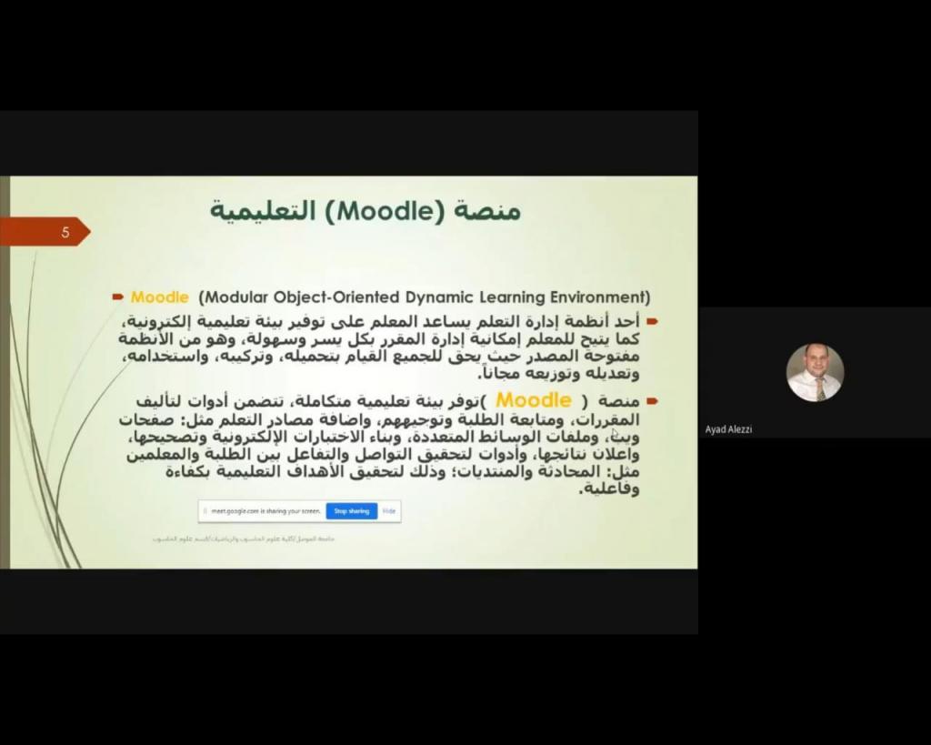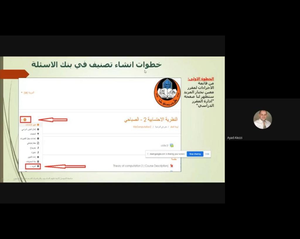 كلية علوم الحاسوب والرياضيات تقيم الورشة العلمية الإلكترونية عن إدارة وتنظيم بنك الأسئلة في منصة موودل التعليمية