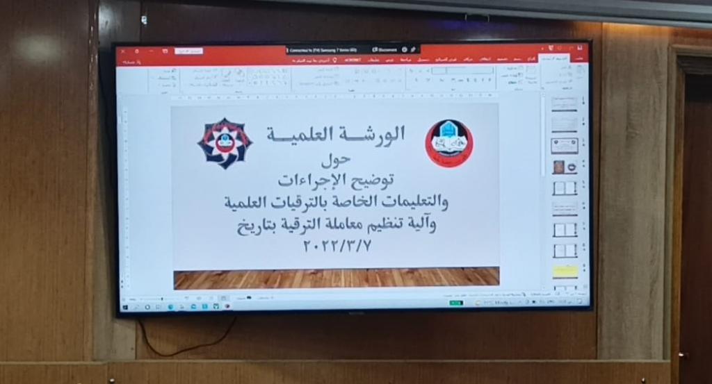 لجنة الترقيات العلمية المركزية في رئاسة جامعة الموصل تقيم ورشة علمية عن الاجراءات والتعليمات الخاصة بالترقيات العلمية