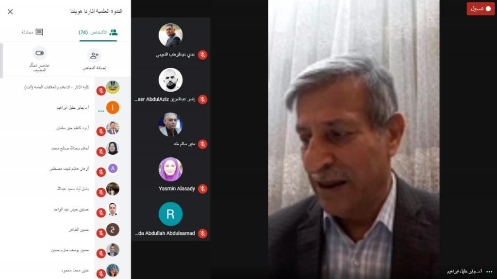 برعاية الاستاذ الدكتور قصي كمال الدين الاحمدي رئيس جامعة الموصل اقامت كلية الاثار ندوتها العلمية الافتراضية الأولى تحت شعار “اثارنا هويتنا” الموسومة ” احياء المعالم الأثرية والتراثية في مدينة الموصل ” بالتعاون مع قسم الحضارة وفريق سواعد موصلية ومنظمة USAID مساء يوم الاحد الموافق 8/11/2020 ، حضرها الأستاذ الدكتور منير سالم طه المساعد العلمي للسيد رئيس الجامعة و الاستاذ المساعد الدكتور ياسمين عبدالكريم عميد الكلية، وعدد من الاساتذة والاكاديميين من ذوي الاختصاص في جامعة الموصل والجامعات العراقية .