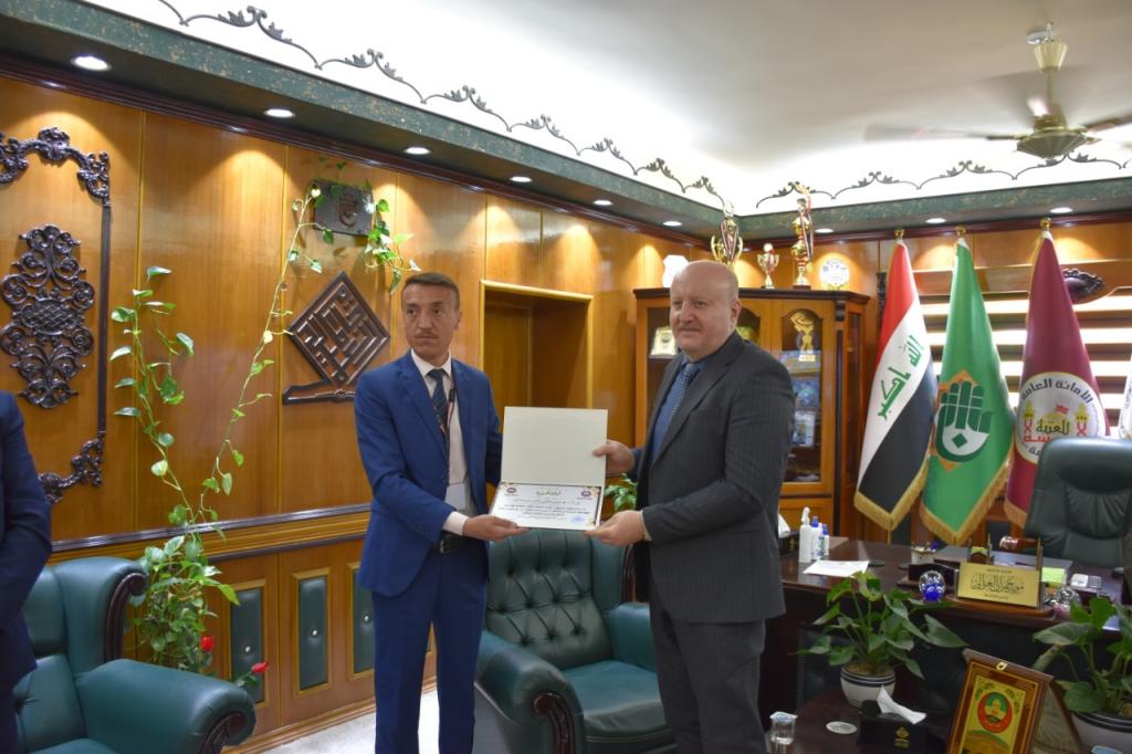 وفد من اساتذة وطلبة كلية التمريض يجري زيارة علمية الى جامعة العميد في كربلاء المقدسة