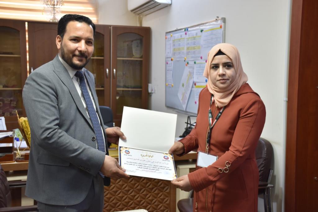 ضمن توجهات عمادة كلية التمريض ممثلة بالسيدة عميد الكلية الاستاذ الدكتور سلوى حازم المختار بضرورة تعزيز التعاون مع المؤسسات التعليمية المحلية والدولية، اجرى وفد من اساتذة وطلبة الكلية صباح يوم السبت الموافق 26/أذار /2022 زيارة علمية الى جامعة العميد في كربلاء المقدسة، حيث تم استقبال الوفد بكل حفاوة وترحيب من قبل عمادة واساتذة جامعة العميد.عقد خلالها اجتماع بين وفد الكلية الذي ضم كلاً من الاستاذ المساعد الدكتورنصر موفق يونس والمدرس الدكتور هناء حسين مخلف والمدرس الدكتور لؤي امجد والمدرس المساعد فاطمة حسن وطلبة الوفد مع مدير مركز الاعلام الوقائي في العتبة العباسية المقدسة السيد جسام محمد السعيدي حيث تم خلال الاجتماع القاء محاضرة من قبل مدير الاعلام للعتبة العباسية والمشاريع المنجزة لها ، وجرى في اليوم الثاني لقاء السيد مساعد رئيس جامعة العميد للشؤون الإدارية الأستاذ الدكتور علاء جبر الموسوي والمساعد العلمي الاستاذ الدكتور ميثم حميد القنبر وعميد كلية التمريض الاستاذ المساعد الدكتور ضياء البياتي للإطلاع على معالم الجامعة ومختبراتها التعليمية والتعاون المشترك ما بين الجامعتين، كما اجرى الوفد جولة ميدانية في أروقة وكليات ومختبرات وقاعات الجامعة وما تحتويه من أجهزة علمية ومليكانات وشاشات متطورة ونظم تعليم إلكتروني حديث، حيث تم تكريم كل من السيد رئيس جامعة العميد وعميد كلية التمريض لما قدموه من معلومات قيمة تخدم بها طلبة الوفد ولحسن الاستقبال وكرم الضيافة .