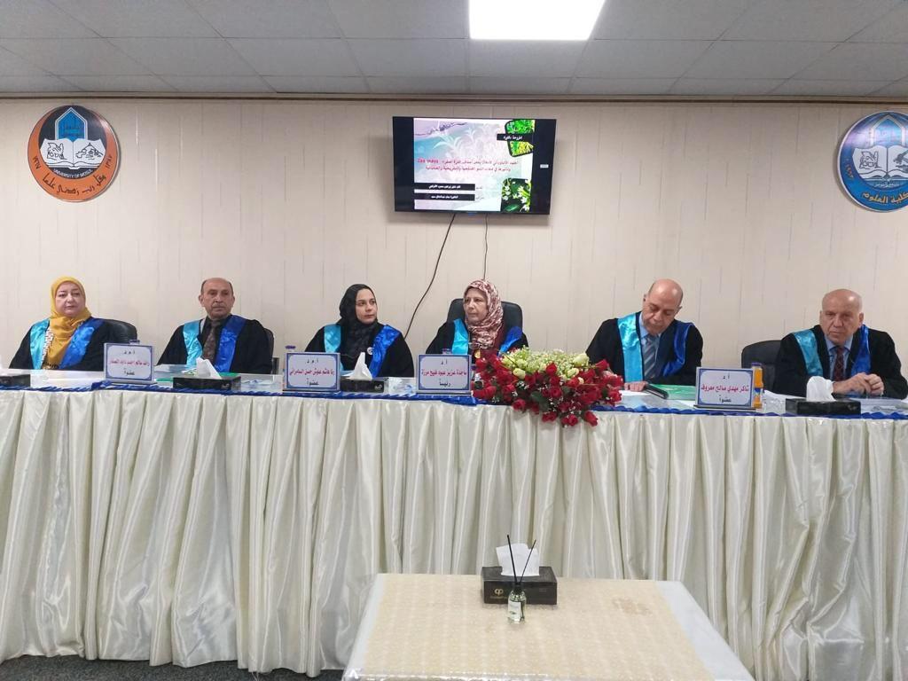 ناقشت كلية العلوم في جامعة الموصل أطروحة الدكتوراه الموسومة ” الجهد الاليلوباثي لأدغال بعض أصناف الذرة الصفراء وتأثيرها في صفات النمو الفسلجية والتشريحية والكيميائية ” ، يوم الأربعاء ٢ آذار 2022 ، حضر جانباً منها السيد عميد الكلية والسيد عميد كلية علوم البيئة وتقاناتها والسادة معاوني العميد لكلية العلوم وعدداً من تدريسي الكلية .تناولت الدراسة التي تقدمت بها الطالبة فاتن خليل ابراهيم في قسم علوم الحياة / فرع النبات دراسة التأثير الاليلوباثي للمستخلصات المائية والمتبقيات النباتية لأدغال الفيلة والكلغان والحليان والشوفان البري في انبات ونمو ثلاثة أصناف من الذرة الصفراء وتشخيص وتحديد المستوى الكمي للمركبات الفينولية في المستخلصات الكحولية والترب الحاوية على مخلفات الادغال التي شملتها الدراسة.تضمنت الدراسة تشخيص أصناف الذرة الصفراء على المستوى الجزيئي وتحديد درجة التقارب الوراثي بين الأصناف المدروسة و التحري عن نشاط بعض المورثات المسؤولة عن بعض صفات النمو لأصناف الذرة الصفراء.،هدفت الدراسة الى معرفة تأثير المستخلصات المائية للمتبقيات النباتية الجافة في انبات ونمو أصناف ثلاثة من الذرة الصفراء ودراسة تأثير نسب اضافة مخلفات الادغال في صفات النمو والحاصل لأصناف الذرة الصفراء وتحديد المستوى الكمي للمركبات الفينولية في المستخلصات والترب الحاوية على مخلفات الادغال وتشخيص نبات الذرة الصفراء عند المستوى الجزيئي .ترأست لجنة المناقشة الأستاذ الدكتورة ساجدة عزيز عبود وعضوية كلاً من الأستاذ الدكتور شاكر مهدي صالح و الأستاذ الدكتور محمد سعيد فيصل الأستاذ المساعد الدكتور رائد سالم الصفار والأستاذ المساعد الدكتورة رنا هاشم علوش و بإشراف وعضوية الأستاذ الدكتورة جنان عبد الخالق سعيد.