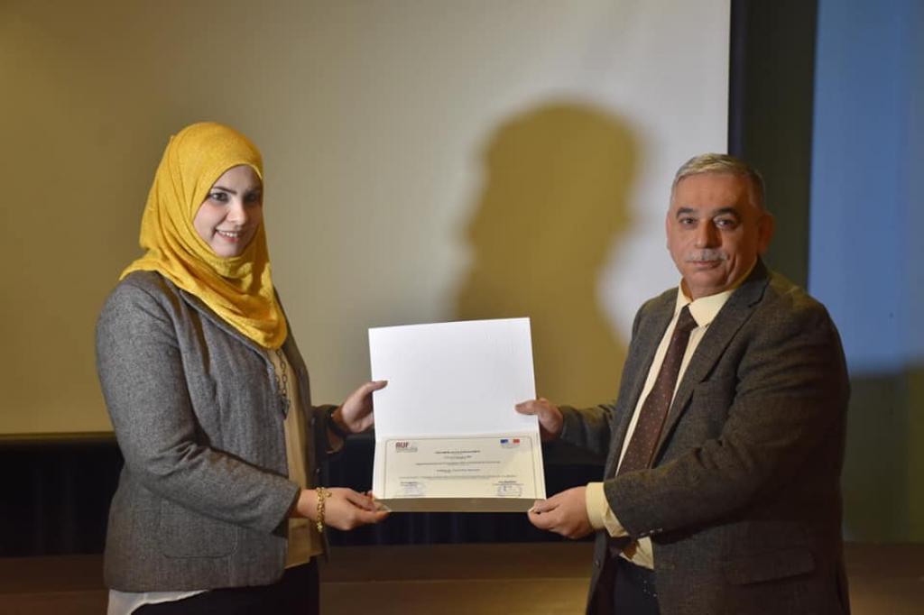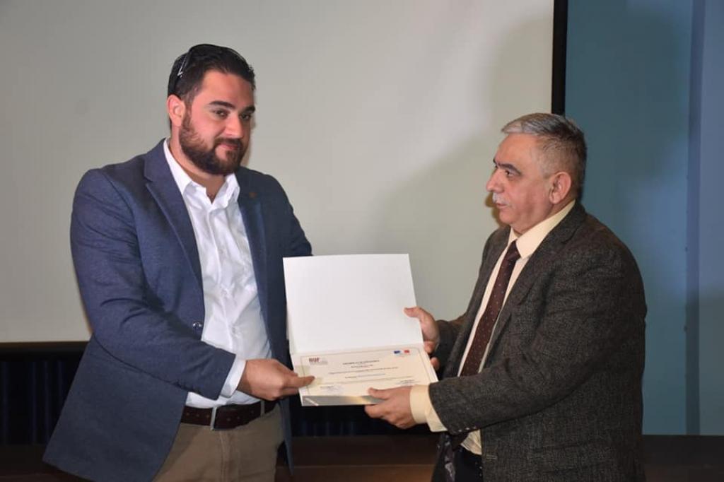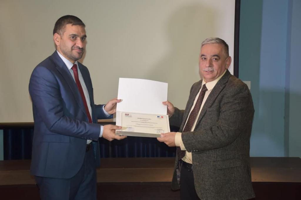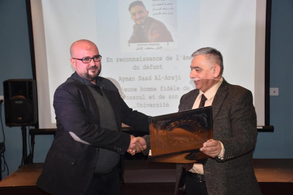 تثميناً لجهود المشاركين بإعمال دورة التعليم الرقمي و برعاية وحضور السيد رئيس جامعة الموصل والسيد مساعد رئيس الجامعة للشؤون العلمية ومدير قسم البعثات والعلاقات الثقافية ، اقيم في القاعة الرئيسية للمعهد الثقافي الفرنسي _ العراقي في المجمع الثاني لجامعة الموصل حفل توزيع الشهادات على المشاركين في الدورة صباح اليوم الاثنين الموافق 3 شباط 2020 التي اقامتها الوكالة الجامعية الفرانكفونية بدعم من السفارة الفرنسية ببغداد جرى خلالها تسليم درع الجامعة الى عائلة الفقيد المرحوم ايمن الاعرجي الموظف في الجامعة والناشط المدني احد المشاركين في هذه الدورة، ثم تم بعدها توزيع الشهادات على السادة المشاركين فيها.