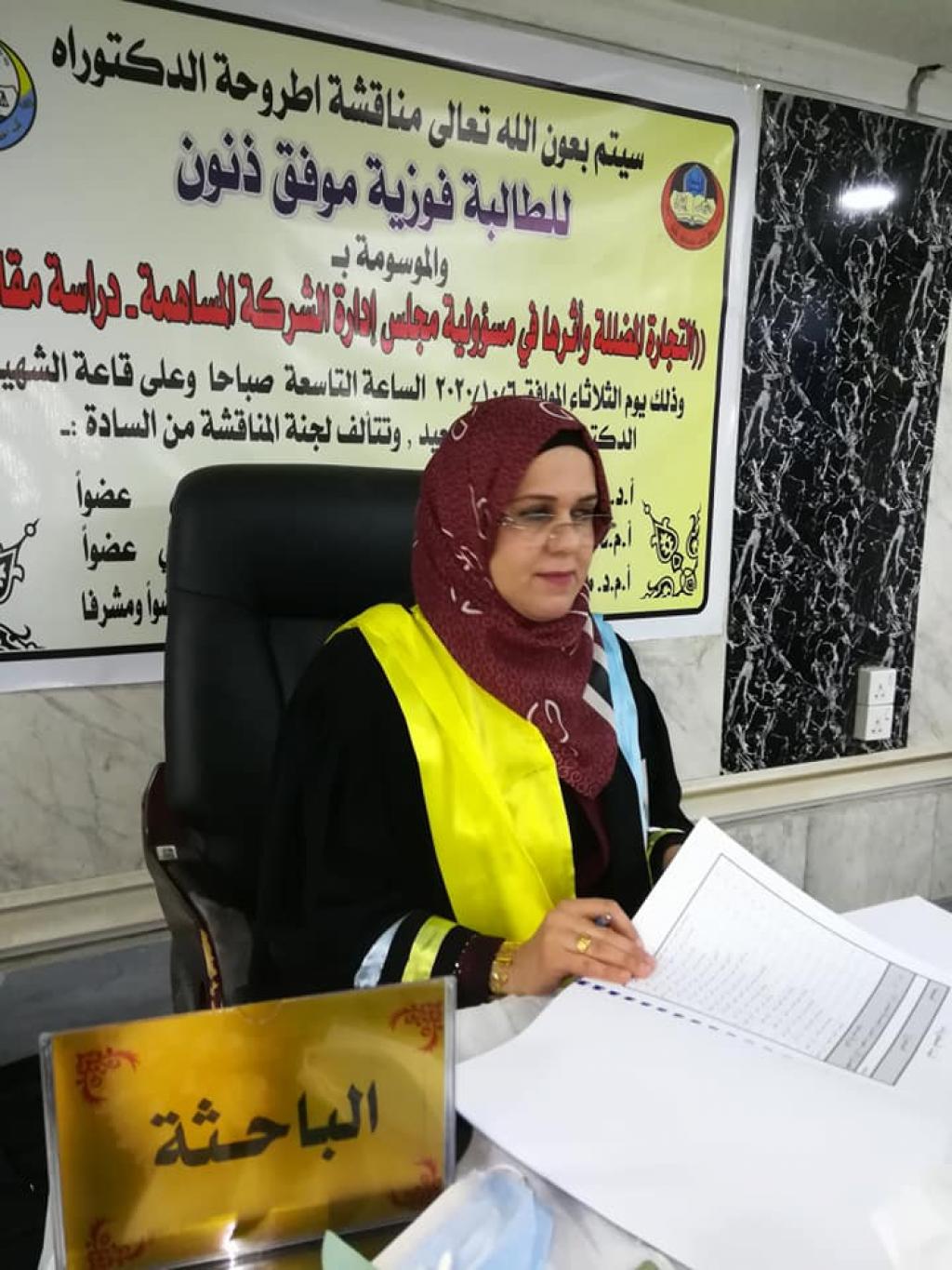 تناولت الاطروحة التي تقدمت بها الطالبة فوزية موفق ذنون من فرع القانون الخاص ، دراسة عن التجارة المضللة والمسؤولية القانونية المترتبة على ممارسة مجالس ادارة الشركات المساهمة لهذه التجارة المضللة حيث لم ينظم التشريع العراقي مفهوم عذع التجارة .