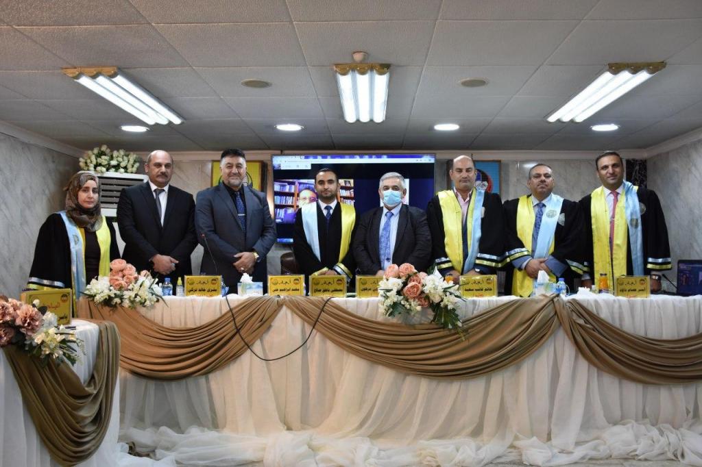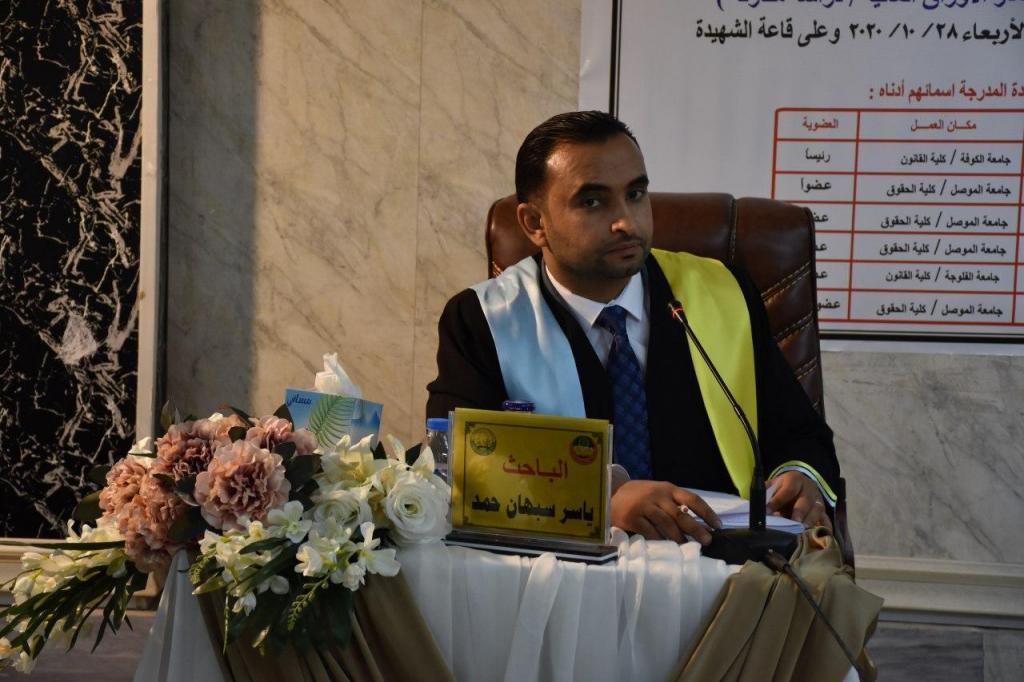 ناقشت كلية الحقوق في جامعة الموصل اطروحة الدكتوراه الموسومة ( التنظيم القانوني لدور المصرف في استثمار الاوراق المالية / دراسة مقارنة) ، صباح يوم الاربعاء الموافق 28 تشرين الاول 2020، حضرها السيد رئيس جامعة الحمدانية الاستاذ الدكتور عقيل يحيى هاشم الاعرجي والسيد مساعد رئيس جامعة الموصل للشؤون العلمية الاستاذ الدكتور منير سالم طه وعميد الكلية الاستاذ المساعد الدكتور وسام نعمت ابراهيم السعدي.