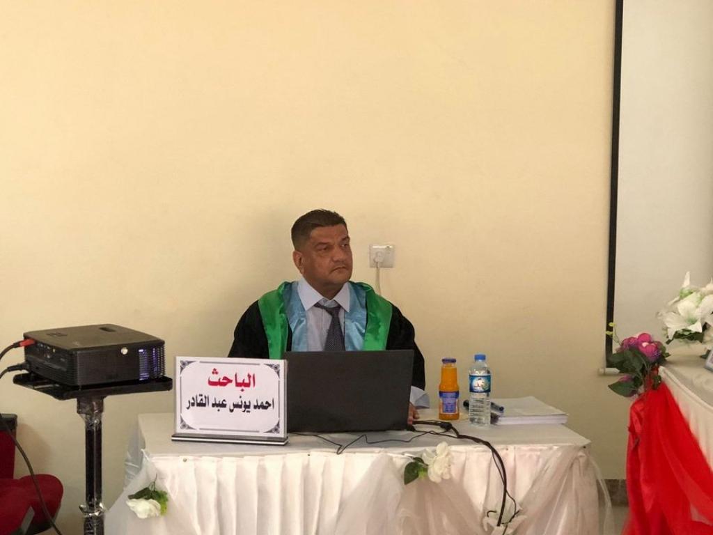 ترأس لجنة المناقشة الأستاذ الدكتور معاذ عبدالله الحجار وعضوية كل من الأستاذ الدكتور اياد جاجان خورشيد والدكتور عصام محمد شيت والدكتور احمد سعيد عبد الله والاستاذ الدكتور انور نوري محمد وباشراف وعضوية الدكتور طلال قاسم ابراهيم .