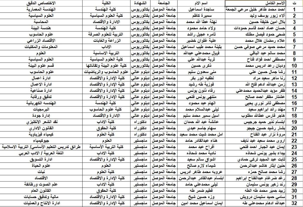 تدعو جامعة الموصل الخريجين من (الثلاثة الأوائل) وحملة الشهادات العليا (الماجستير والدكتوراه) المدرجة اسماءهم ادناه ممن قدمو اعتراض عبر نافذة مجلس الخدمة الاتحادي ضرورة مراجعة رئاسة الجامعة /شعبة التوظيف والملاك لغرض تصحيح بياناتهم مستصحبين معهم كافة الوثائق يوم الاحد المصادف 2022/9/11 قبل نهاية الدوام الرسمي، وبخلافه يتعذر على الجامعة ومركز الوزارة اجراء تعديلات على بياناتهم في حال عدم مراجعتهم وسوف يسقط حقهم بالتقديم.