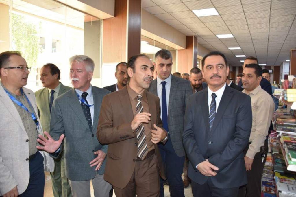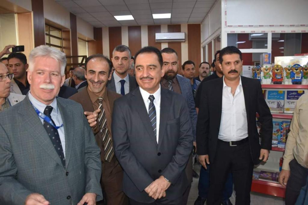 افتتح الاستاذ الدكتور قصي كمال الدين الاحمدي رئيس جامعة الموصل صباح اليوم الخميس الموافق 17 تشرين الاول 2019 معرض البيع المباشر للكتاب في المركز الطلابي برفقة مسؤول اعادة اعمار المناطق المتضررة للساحل الايسر من مدينة الموصل السيد( GIM ) ومدير قسم المشاريع والاعمار ومدير المعرض , بعد اعادة تاهيله من اثار الدمار الذي تعرض له اثناء سيطرة داعش على المدينة ليضاف الى الصروح العلمية في جامعة الموصل التي تنهض من جديد الواحدة تلو الاخرى, واجرى سيادته جولة في اروقة المعرض مطلعا على المعروض من مختلف الكتب المنهجية وفي كافة التخصصات العلمية والادبية والتاريخية وغيرها مبديا عن سعادته بما انجز فيه من اعمار ليعود الى تقديم خدماته الى طلبة وتدريسيي وباحثي الجامعة .