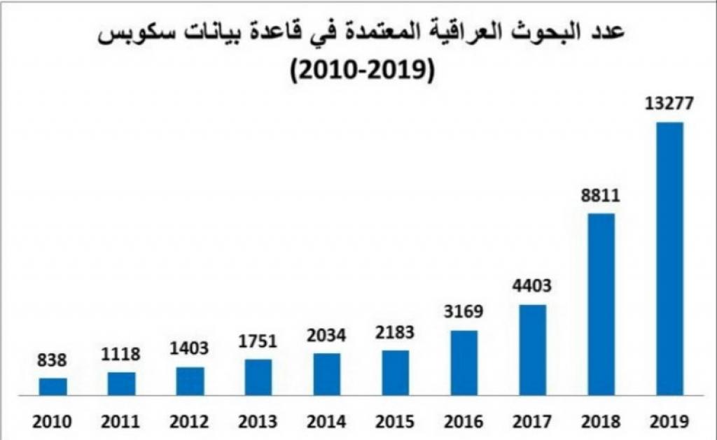 سجلت بيانات الجامعات العراقية تقدما ملحوظا على مستوى البحوث المنشورة في المجلات والمؤتمرات المعتمدة في قاعدة بيانات سكوبس حيث بلغت قرابة أربعين ألف بحث خلال السنوات العشر الماضية.وأوضحت دائرة البحث والتطوير عبر مديرها الدكتور غسان حميد عبد المجيد أن 838 بحثا شق طريقه للنشر في عام 2010 وتصاعدت أعدادها سنويا بنسب متقاربة الى أن حققت صعودا لافتا في عام 2019 إذ بلغت البحوث المنشورة في هذه السنة وحدها 13227 بحثا بنسبة 84. 14% ليكون مجموع البحوث المنشورة على مدى السنوات العشر الماضية 38987 بحثا.وتابع أن هذه البيانات على الرغم من أنها أثبتت زيادة في أعداد البحوث فإنها أشرت حضورا وتحسنا ملموسا في نوعية ورصانة المجلات التي نشرت فيها البحوث لافتا الى أن البيانات كشفت أن 41.6% من البحوث منشورة في المجلات التي تقع في الربع الأول والثاني من تسلسل المجلات على وفق التخصصات مما يثبت التحسن العلمي المطرد للباحثين العراقيين وإسهامهم الفاعل في البحث العلمي مؤكدا أن هذه النتائج الإيجابية ساعدت على دخول الجامعات العراقية في التصنيفات العالمية.وأكد أن وزارة التعليم العالي والبحث العلمي والجامعات العراقية مستمرة بتنفيذ الخطط والمشاريع الخاصة بتطوير البحث العلمي في العراق والعمل على زيادة أعداد المجلات والمؤتمرات العراقية المعتمدة في قاعدة بيانات سكوبس.دائرة العلاقات والاعلام