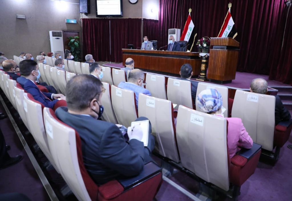 وجه وزير التعليم العالي والبحث العلمي الأستاذ الدكتور نبيل كاظم عبد الصاحب بزيادة خطة القبول في كليات المجموعة الطبية الى خمسين بالمئة من طاقتها الاستيعابية لتغطية أعداد الطلبة خريجي السادس الإعدادي من فئة أصحاب المعدلات العالية.جاء ذلك لدى ترؤسه اجتماعا لعمداء كليات المجموعة الطبية في العراق وبحضور مدير دائرة الدراسات والتخطيط والمتابعة الدكتور ايهاب ناجي عباس حيث تدارسوا رفع مستوى الطاقة الاستيعابية للمجموعة الطبية على مستوى الجامعات الحكومية كافة لاستيعاب مخرجات الدراسة الاعدادية للعام الدراسي 2021/2020.واستعرض المجتمعون بيانات الطلبة من مخرجات الدور الأول التي سجلت معدلات استثنائية وصل بعضها الى أعلى من عتبة الـ(100) وبواقع ستة آلاف وأربع وخمسين طالبا وناقشوا الخيارات الممكنة لمعالجة مؤشر الزيادة الكبيرة في أعداد الطلبة والمعدلات العالية التي ستتنافس على حجز مقاعد المجموعة الطبية.ووجه معالي الوزير برفع الطاقة الاستيعابية الى 50 % في كليات المجموعة الطبية التي سيتنافس فيها الجميع على وفق المعدل ورغبة الطالب في تسجيل الاختيارات المناسبة في استمارة القبول المركزي.وفي هذا السياق أعرب عمداء كليات المجموعة الطبية عن تفهمهم للظروف والمتطلبات والتحديات الراهنة مؤكدين في الوقت نفسه إلتزامهم ودفاعهم عن رصانة التعليم الطبي في العراق.دائرة العلاقات والاعلاموزارة التعليم العالي والبحث العلمي11 تشرين الثاني 2020رابط الخبر من هنا