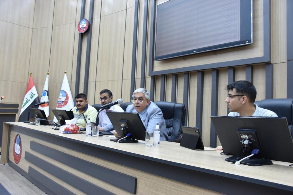 السيد المساعد العلمي لرئيس الجامعة يناقش مشروع النظام الالكتروني الخاص بإدارة معلومات الطلبة خلال اجتماعه بالسادة معاوني عمداء الكليات للشؤون العلمية