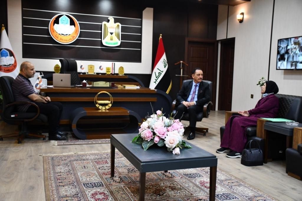السيد رئيس جامعة الموصل يلتقي بزوجة الراحل فقيد الموصل ومفكرها الطبيب والفيلسوف الاستاذ الدكتور عادل البكري رحمه الله