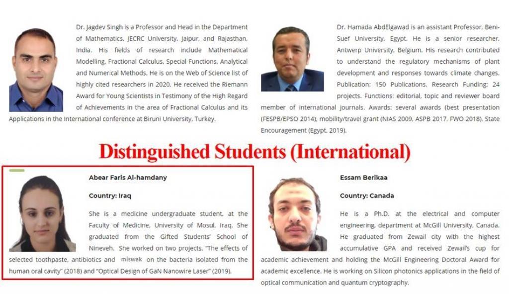 الطالبة عبير فارس الحمداني تحصد المركز الأول في البحوث المبكرة