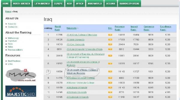 تتميز جامعة الموصل بانجازاتها العلمية على المستوى المحلي والعالمي , احد هذه الانجازات هو حصول كلية الطب البيطري في جامعة الموصل على المرتبة الأولى في ترتيب كليات الجامعات العراقية كافة وحسب التصنيف العالمي لتسلسل الجامعات Web metricsفضلاً عن حصولها على المرتبة السابعة في ترتيب الجامعات العراقية وحسب نفس التصنيف .