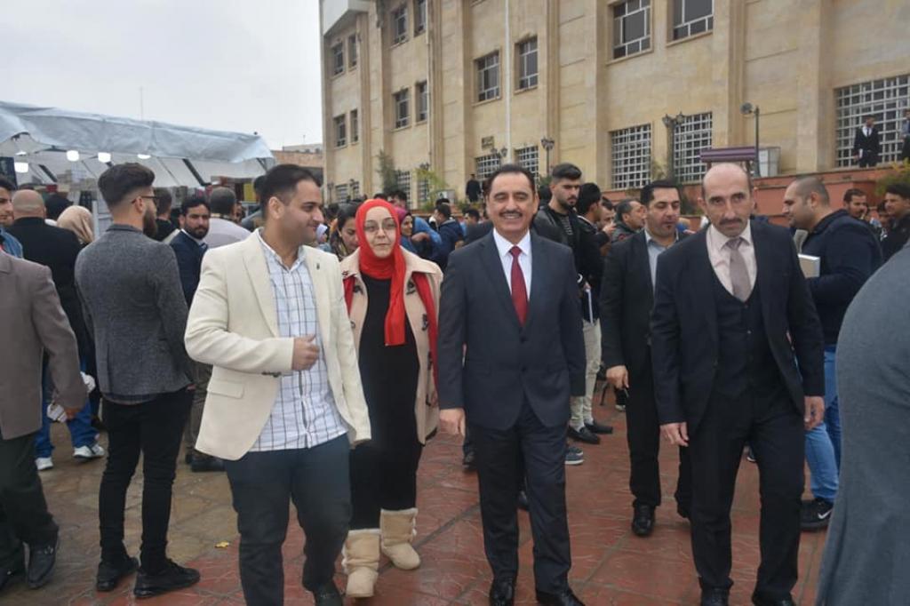 أفتتح الاستاذ الدكتور قصي كمال الدين الاحمدي رئيس جامعة الموصل معرض الكتاب الشامل الذي اقامته كلية الآداب بالتعاون مع مكتبة دار الرافدين بيروت / لبنان صباح يوم الاحد الموافق 8 كانون الاول 2019 في باحة كلية الآداب حيث اطلع سيادته على معروضات الكتب المختلفة مثمناً جهود القائمين عليه داعياً الى العناية بالتوجهات الثقافية عبر معارض مستقبلية ترفد الحركة العلمية والتعليمية والثقافية في جامعة الموصل .