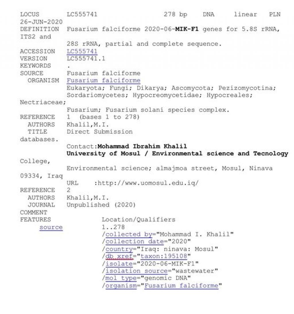 اكتشف الباحث والأستاذ المساعد الدكتور محمد إبراهيم خليل رئيس قسم علوم البيئة /كلية علوم البيئة وتقاناتها جامعة الموصل جينات لعزلات فطرية جديدة لأول مرة عالميا وسجلها باسمه في بنك المعلومات الدولي .