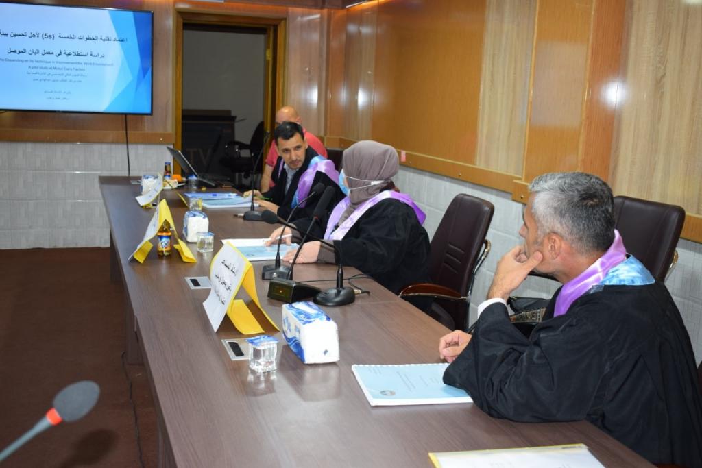 ناقشت كلية الادارة والاقتصاد في جامعة الموصل رسالة دبلوم عالي بعنوان “اعتماد تقنية الخطوات الخمسة لتحسين بيئة العمل : دراسة ميدانية في معمل البان الموصل” يوم الخميس الموافق 15_تشرين الاول _ 2020.تهدف الرسالة التي قدمها الباحث “حسين عبد الهادي حسن” الى ابراز مدى تأثير الاعتماد على تقنية s5( متغير مستقل) في تحسين بيئة العمل (متغير معتمد) .استنتج البحث الى ان خطوات تقنية 5S المتواجدة في بيئة عمل المعمل المبحوث بصورة ضمنية غير صريحة وأن بيئة العمل في الميدان المبحوث مقبولة مع الحاجة لبعض الامكانيات المادية.اوصت الدراسة بتبني تقنية 5s بصورة علمية قدر الامكان ونشر التوعية بشأنها مع تعريف الافراد بظروف بيئة العمل الامثل المؤدية الى رفع مستوى السلامة والأداء ودورهم في بلوغها.ترأس لجنة المناقشة الاستاذ المساعد الدكتور الاء حسيب الجليلي وعضوية كلا من ( م. محمد منيب محمود ، أ.م. رياض جميل وهب / عضواً ومشرفاً ) .