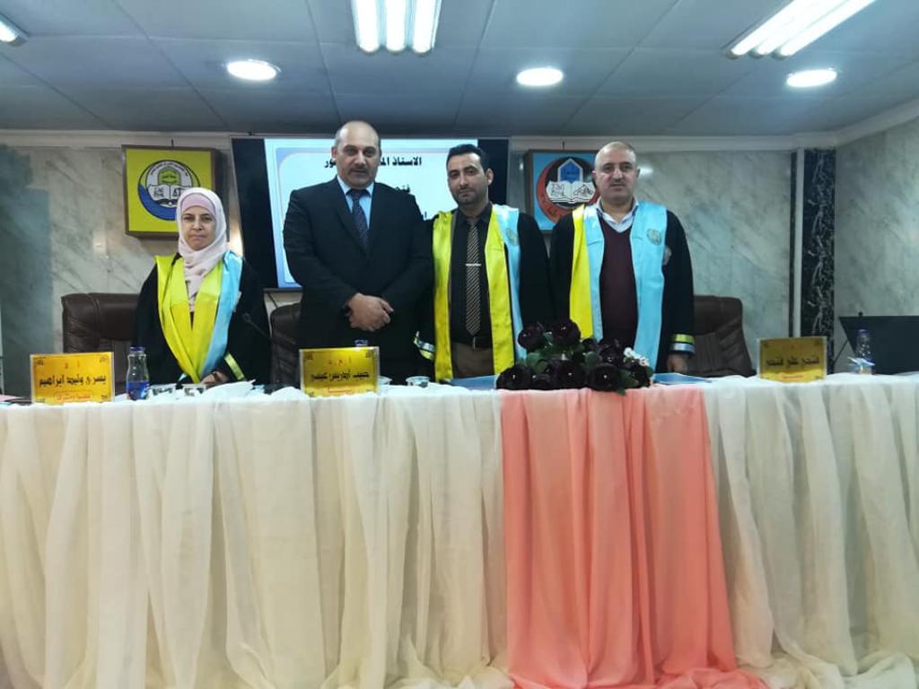 ترأس لجنة المناقشة الدكتور حبيب ادريس عيسى وعضوية الدكتور فتحي علي فتحي ، وبإشراف وعضوية الدكتورة يسرى وليد ابراهيم