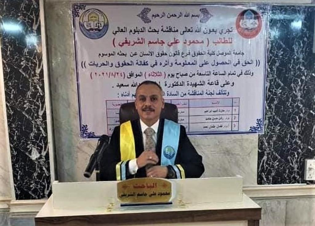 ناقشت كلية الحقوق بجامعة الموصل بحث دبلوم عالي عن الحق في الحصول على المعلومة واثره في كفالة الحقوق والحريات، يوم الثلاثاء ٢٤ آب ٢٠٢١ ، حضر جانبا منها الاستاذ المساعد الدكتور وسام نعمت ابراهيم السعدي عميد الكلية .تناول البحث الذي تقدم به الطالب محمود علي جاسم في فرع قانون حقوق الانسان ، حق الحصول على المعلومة الذي يعد من الحقوق المدنية والسياسية الاساسية والذي اصبح من الحقوق التي لا يمكن الاستغناء عنها ووجد اساسه القانوني في المواثيق والعهود الدولية .تهدف الدراسة الى بيان ضرورة الحصول على المعلومة من الحقوق الاساسية للانسان والذي يضمن للافراد الحصول على المعلومات المطلوبة من قبلهم وعلى الموؤسسات الحكومية وبموجب القانون باتاحة المعلومات بأي وسيلة سواء الوسائل السمعية او المرئية .ترأس لجنة المناقشة الدكتور حارث اديب ابراهيم وعضوية الدكتورة رفل حسن حامد وبإشراف وعضوية الدكتور لقمان عثمان احمد .