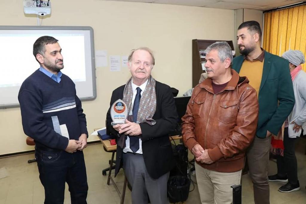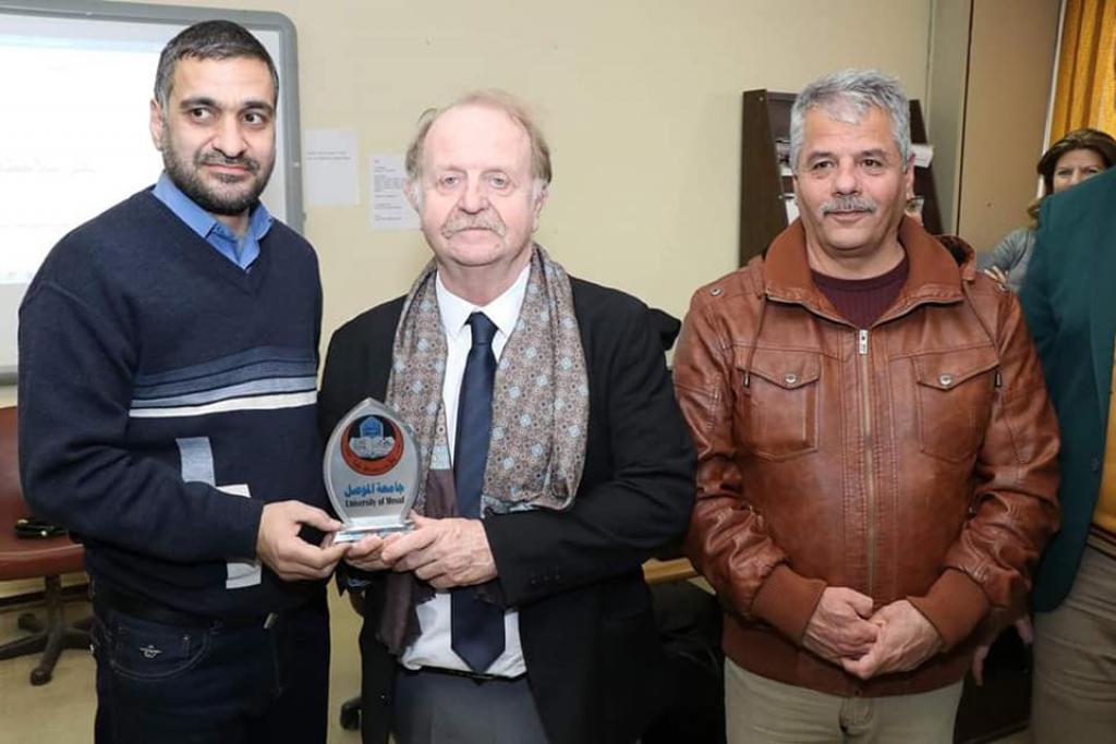 ونيابة عن الاستاذ الدكتور قصي كمال الدين الاحمدي رئيس جامعة الموصل، قام الدكتور محمد عبدالغني الدباغ مدير مركز الحاسبة الالكترونية بإهداء درع الجامعة للسيد ايرفيه سابوران، مدير مكتب الشرق الاوسط DRMO في الوكالة الجامعية الفرنكوفونية تقديرا لدوره في هذا المجال، حيث عبر السيد سابوران عن إمتنانه لهذه المبادرة وأشاد بالمستوى العلمي الذي يتحلى به المشاركون في دورات التعليم الرقمي المنظمة برعاية مؤسسته.