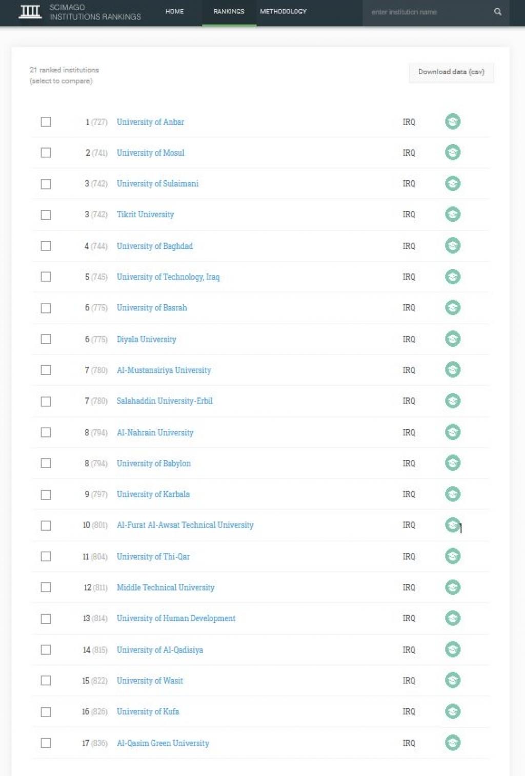 رابط التصنيف: (www.scimagoir.com/rankings.php?country=IRQ)رابط الوزارة