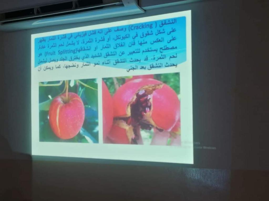 تناولت المحاضرة التعريف بمرض تشقق الثمار كونه أحد الأمراض الفسلجية التي تصيب بساتين الفاكهة والذي يؤدي إلى انخفاض الحاصل والتعرف على أهم اسباب حدوثه فضلا عن بيان كيفية تجنب هذا المرض من خلال تنظيم عملية الري والتسميد ومكافحة الحشرات والأمراض والفطريات واختيار الانواع والاصناف المقاومة للمرض .