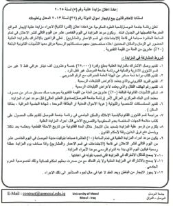تنوه شعبة العقود الحكومية في رئاسة جامعة الموصل عن إلغاء الفقرة الثانية من جدول المواقع الخاص بإعلان المزايدة العلنية رقم ٥ لسنة ٢٠٢٥ .
