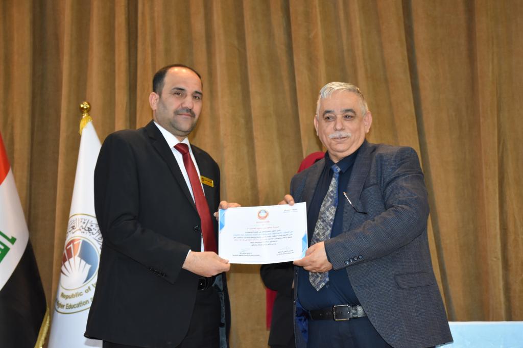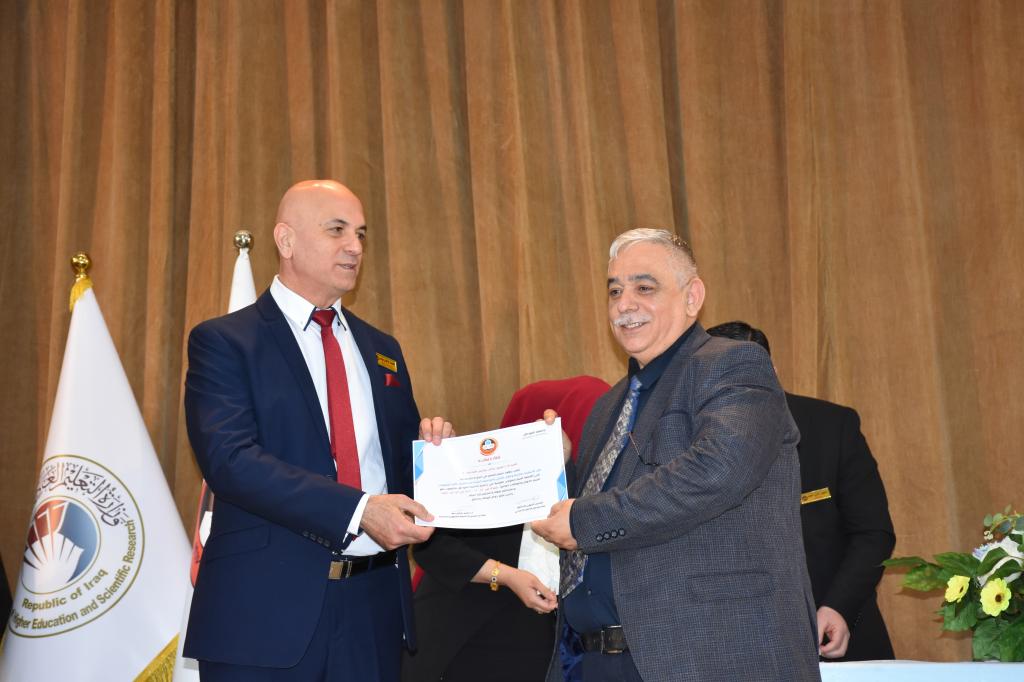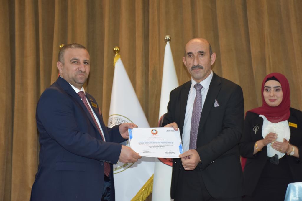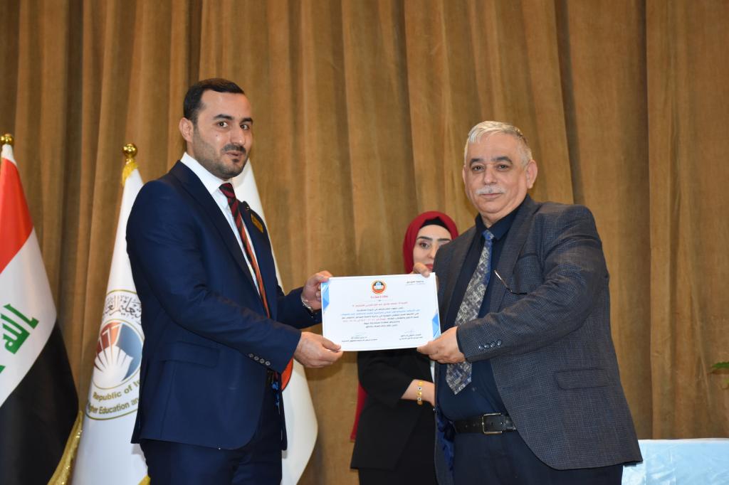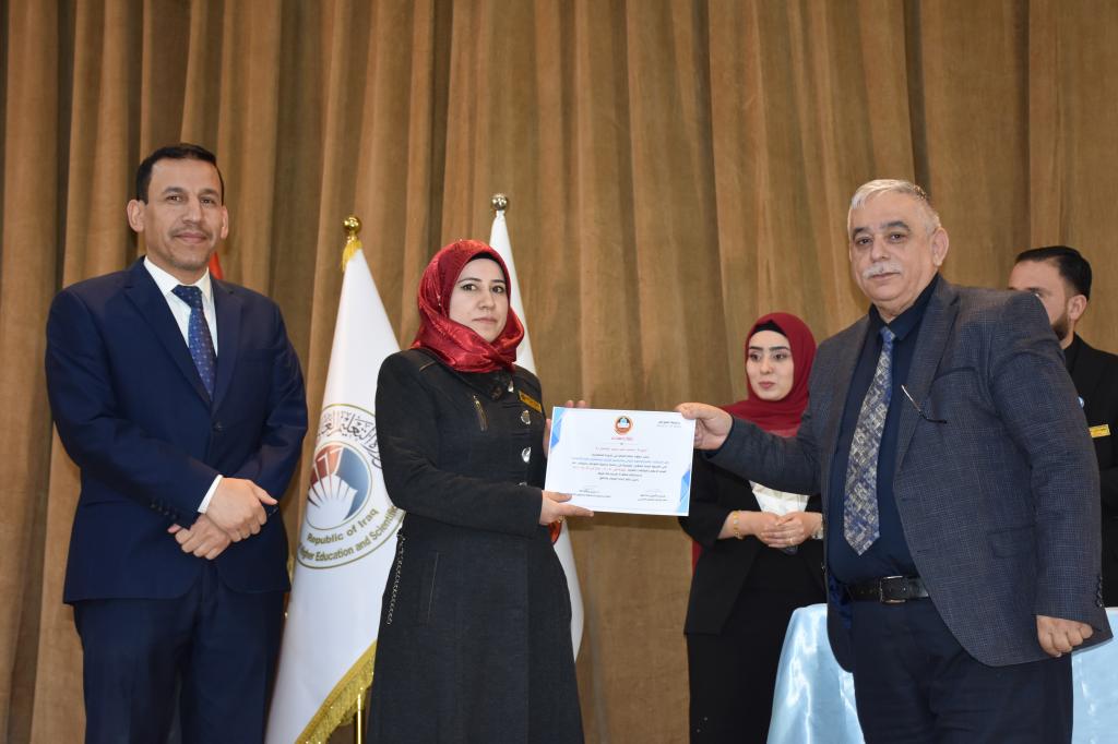 بحضور السيد مساعد رئيس جامعة الموصل للشؤون العلمية الاستاذ الدكتور منير سالم طه وعدد من السادة اعضاء مجلس الجامعة ، جرى يوم الثلاثاء 15 آذار 2022، توزيع الشهادات التقديرية على المشاركين في دورات فن الاتكيت واستقبال كبار الضيوف في قاعة المسرح بالمركز الطلابي، يشار الى ان هذه الدورات اقامها قسم الشؤون العلمية بالتعاون مع قسم الاعلام والعلاقات العامة في وقت سابق وشارك فيها مدراء مكاتب عمداء الكليات والمعاونين ومنتسبين من قسم الاعلام وشؤون الديوان .