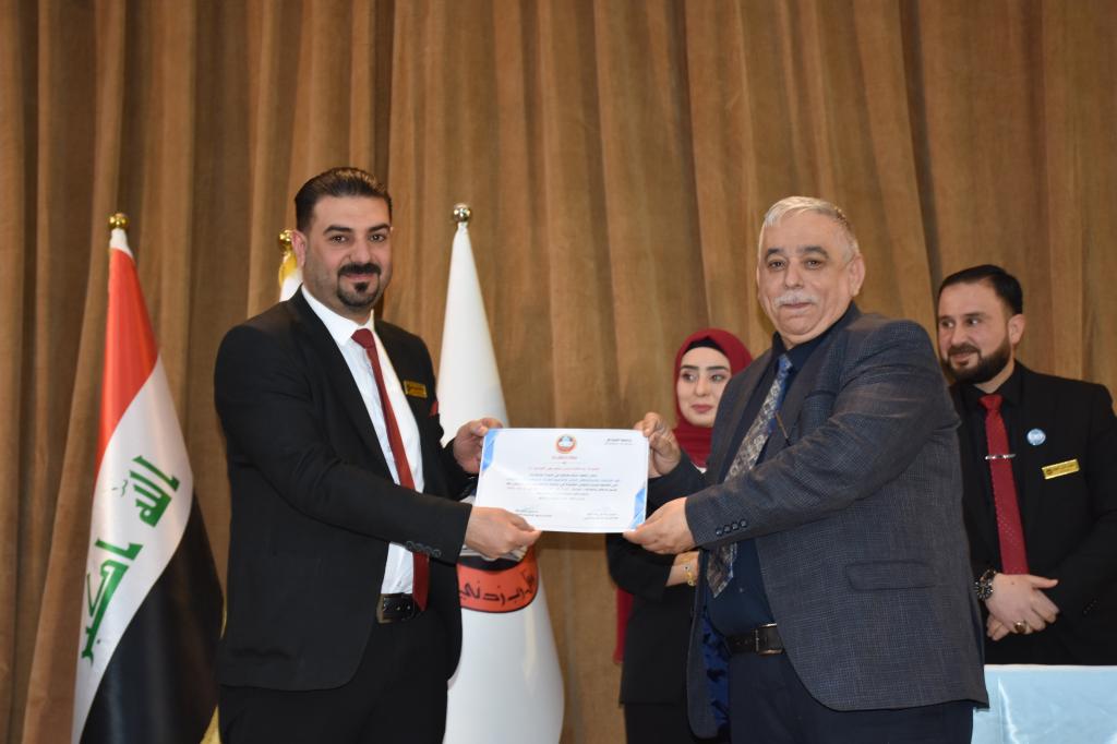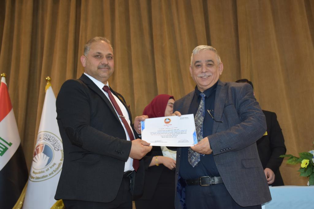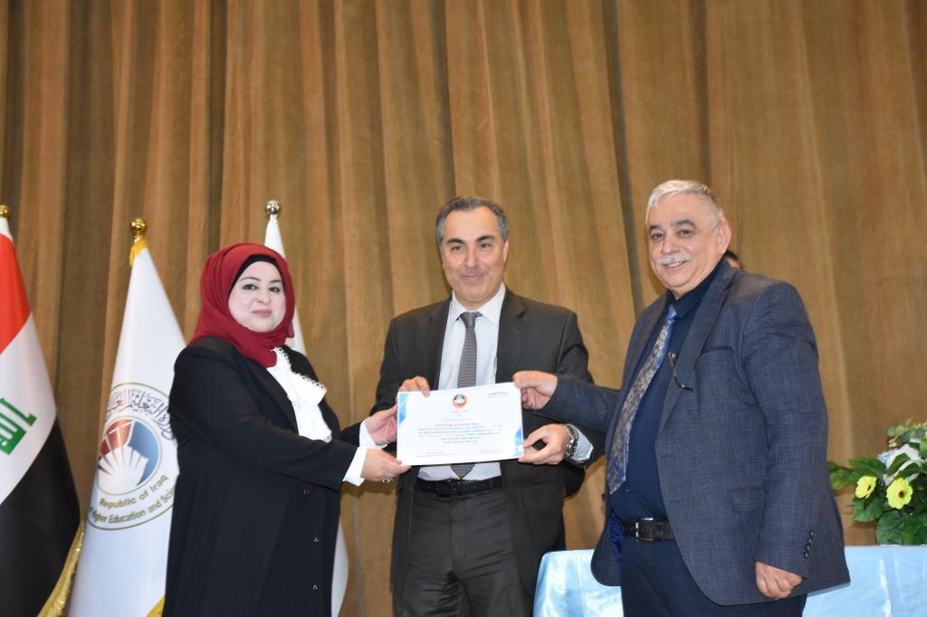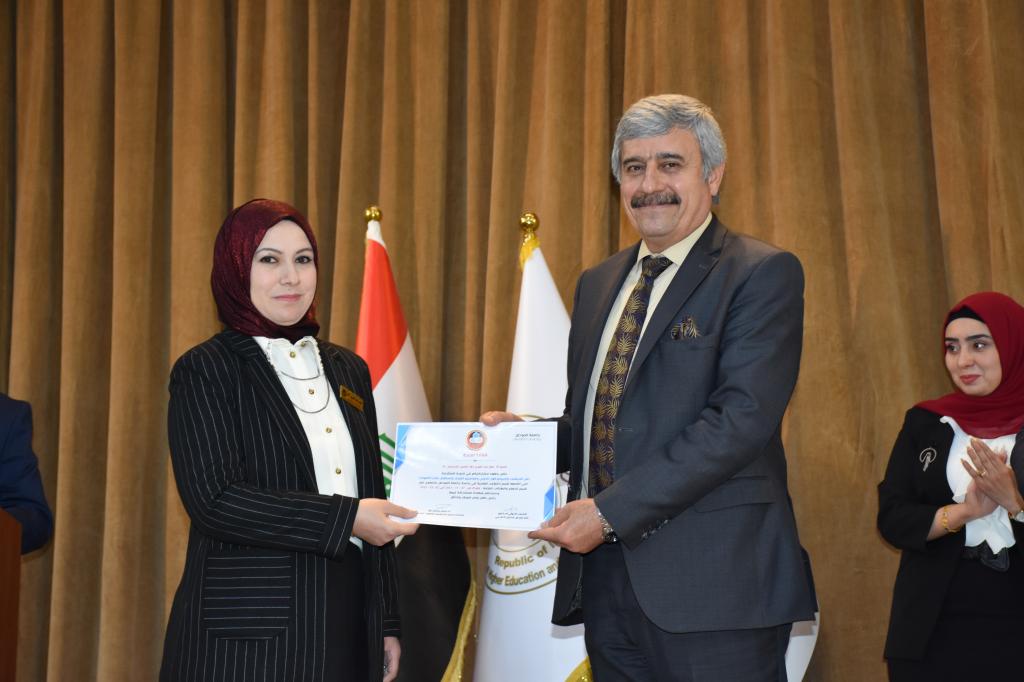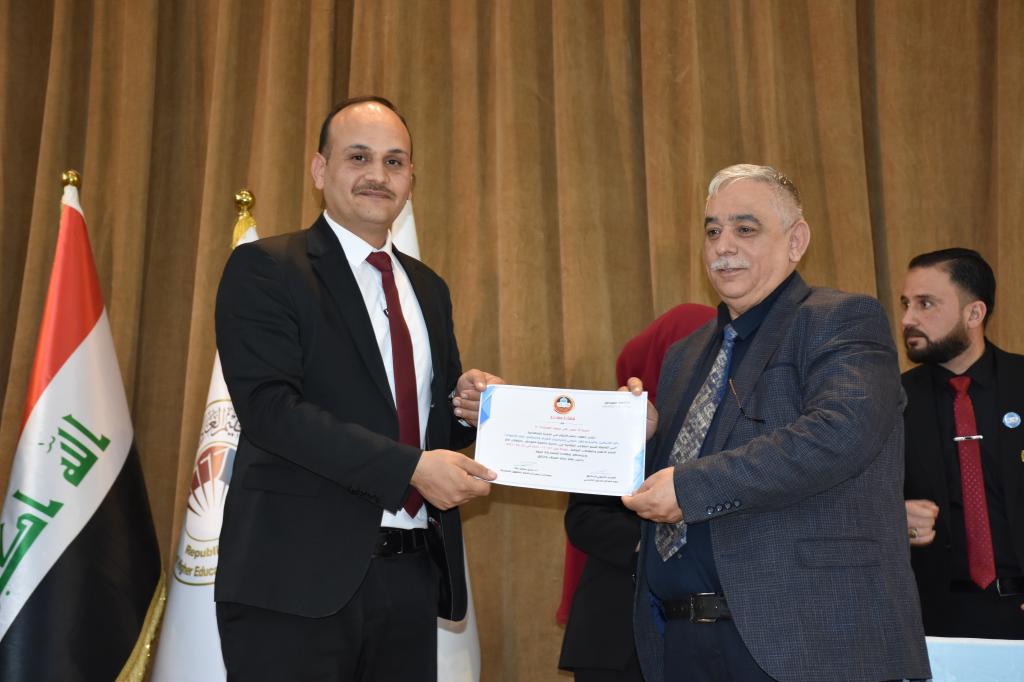 بحضور السيد مساعد رئيس جامعة الموصل للشؤون العلمية الاستاذ الدكتور منير سالم طه وعدد من السادة اعضاء مجلس الجامعة ، جرى يوم الثلاثاء 15 آذار 2022، توزيع الشهادات التقديرية على المشاركين في دورات فن الاتكيت واستقبال كبار الضيوف في قاعة المسرح بالمركز الطلابي، يشار الى ان هذه الدورات اقامها قسم الشؤون العلمية بالتعاون مع قسم الاعلام والعلاقات العامة في وقت سابق وشارك فيها مدراء مكاتب عمداء الكليات والمعاونين ومنتسبين من قسم الاعلام وشؤون الديوان .