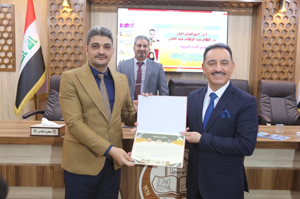 برعاية وحضور السيد رئيس جامعة الموصل الاستاذ الدكتور قصي كمال الدين الاحمدي وباشراف كلا من الاستاذ المساعد الدكتور محمد علي محمد عفين عميد كلية الآداب جامعة الموصل ، والاستاذ الدكتور صالح عجيل الجبوري عميد كلية الاداب جامعة بابل،
