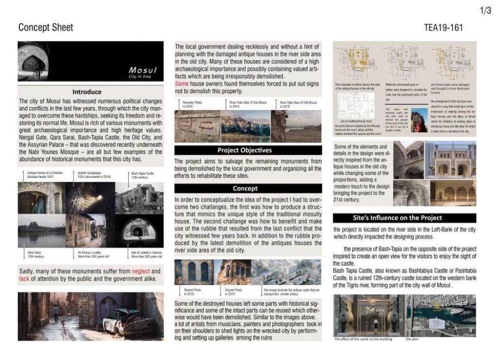 يهدف المشروع في إصلاح المواقع والمنازل الواقعة حول المباني من خلال التعبير عن لغة الموصل المعمارية وتوفير المصادر المحلية.