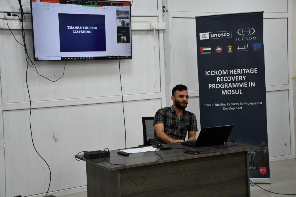 ضمن توجهات جامعة الموصل لدعم الحفاظ على التراث الحضاري لمدينة الموصل، تم توفير قاعة في مركز التعليم المستمر لاستخدامها في اقامة الدورات و الورش التدريبية لبرنامج التعاون الذي ينظمه مركز ايكوروم ICCORM و بدعم من منظمة اليونسكو في جامعة الموصل. حيث حضر الأستاذ الدكتور منير سالم طه مساعد رئيس الجامعة للشؤون العلمية و عدد من أعضاء اللجنة التنسيقية العروض النهائية للمشاركين من خريجي كلية الهندسة (أقسام العمارة والمدني) في الوحدة التدريبية الرابعة من البرنامج التدريبي لأحياء تراث الموصل بحضور مدير البرنامج الدكتور روهيت جيساسو و بمشاركة عدد من الخبراء الدوليين و اساتذة من جامعة الموصل. ضمت عروض خمسة مجموعات من المشاركين حيث عملت كل مجموعة على عدد من البيوت والمواقع التراثية في الموصل