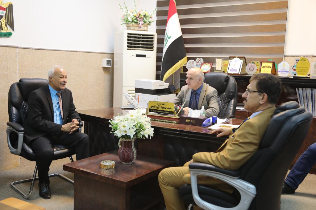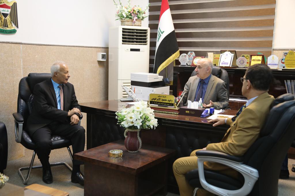 التقاهم الأستاذ الدكتور وحيد محمود الإبراهيمي مساعد رئيس الجامعة للشؤون الإدارية، مرحباً بهم، مثمناً حضورهم ومشاركتهم جامعة الموصل وهي في نهضتها العمرانية والعلمية بعد نكبة تدميرها أبان سيطرة العصابات الإرهابية عليها بين عامي ٢٠١٤_٢٠١٧،