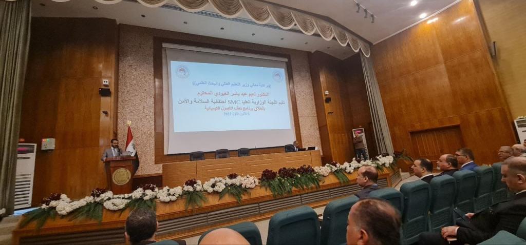 حيث اطلق معالي وزير التعليم العالي والبحث العلمي الدكتور نعيم العبودي خلال احتفالية اقامتها الوزارة بهذه المناسبة يوم الثلاثاء الموافق ٦ كانون الاول ٢٠٢٢ هذا البرنامج قائلا في كلمته إن الوزارة ومؤسساتها الأكاديمية وفرت بيئة علمية لتطوير برامج ومشاريع السلامة والأمن بالتعاون مع المنظمات الدولية،، واضاف معاليه ان البرنامج سيمكن الجامعات ومراكزها العلمية المختصة من السيطرة على تعقب المواد المحظورة وسيحد من إمكانية الوصول إليها أو استخدامها لتهديد البشرية والبيئة.يشار الى ان البرنامج تشرف عليه لجنة وزارية عليا smc برئاسة السيد وكيل الوزارة للشؤون الادارية الاستاذ الدكتور علي كاظم الشكري .