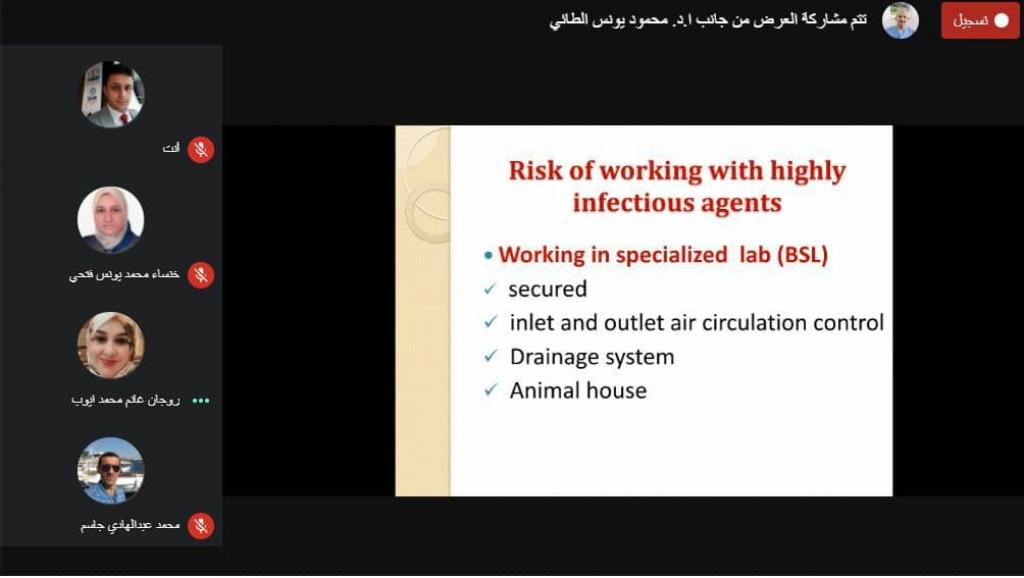 اقامت شعبة السيطرة على تداول المواد الكيمياوية والبايولوجية في جامعة الموصل وبالتعاون مع منظمة CRDF العالمية ، دورة تدريبية الكترونية عن السلامة والأمن البايولوجي عبر منصة google meet لمدة ثلاثة ايام ، شارك فيها عدد من تدريسيي الجامعة.