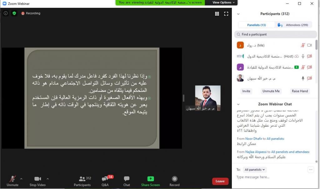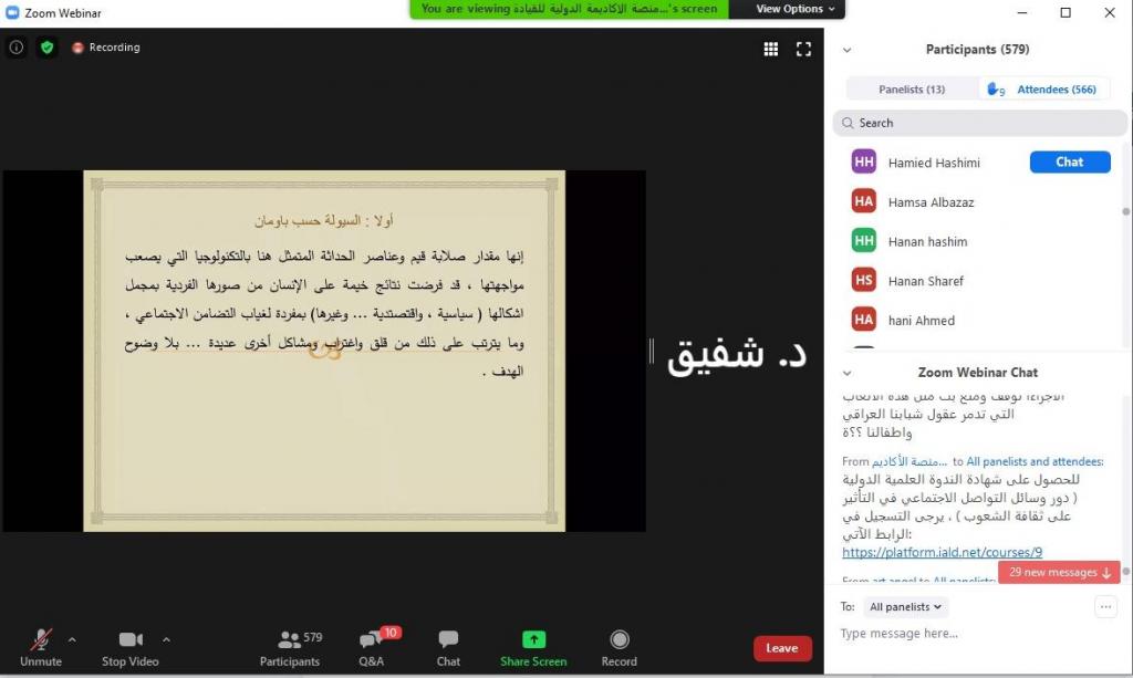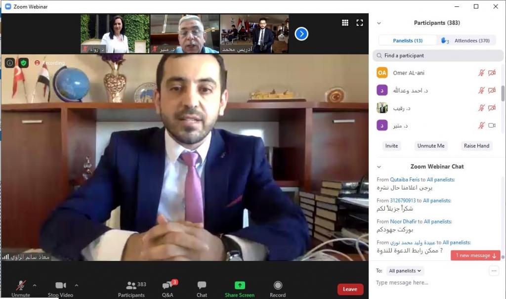برعاية الاستاذ الدكتور قصي كمال الدين الاحمدي رئيس جامعة الموصل وبحضور مساعده العلمي الاستاذ الدكتور منير سالم طه اقام قسم البعثات والعلاقات الثقافية في رئاسة الجامعة ندوة علمية دولية بالتعاون مع الاكاديمية الدولية للقيادة والتنمية بعنوان (دور وسائل التواصل الاجتماعي في التأثير على ثقافة الشعوب) مساء يوم الاربعاء الموافق 1 تموز 2020، عبر الفضاء الالكتروني ، شارك فيها أساتذة و اكاديميين من جامعة الموصل و العديد من الجامعات العراقية والعربية، حيث شهدت الندوة حضوراً واسعاً عبر الفضاء الالكتروني بلغ اكثر من 580 مشترك.