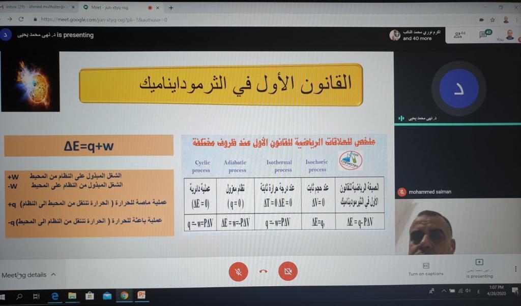 نظم قسم الكيمياء بكلية التربية للبنات في جامعة الموصل وبالتعاون مع مديرية تربية نينوى قسم الإعداد والتدريب دورة علمية لمدرسي تربية المحافظة عبر الفضاء الالكتروني استمرت لمدة يومين متتالين، شارك فيها 50 مدرس ومدرسة.تناولت المحاضرات العلمية التي القاها تدريسيي قسم الكيمياء جانبا نظرياً حول طرق واساليب تدريس المادة باستخدام الوسائل المتاحة في المدارس من اجل نقل المعلومة بشكل يضمن تحقيق مستوى جيد للطلبة.تهدف الدورة الى رفع كفاءة مدرسي ومدرسات مادة الكيمياء في مدارس المدينة وتحسين الاداء في تدريس هذه المادة .
