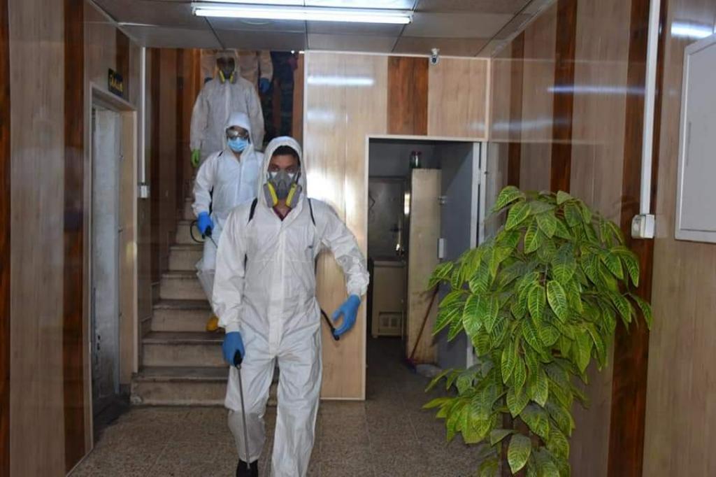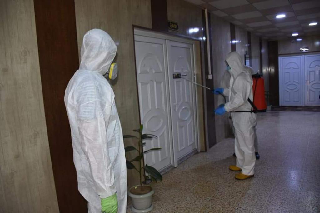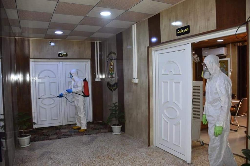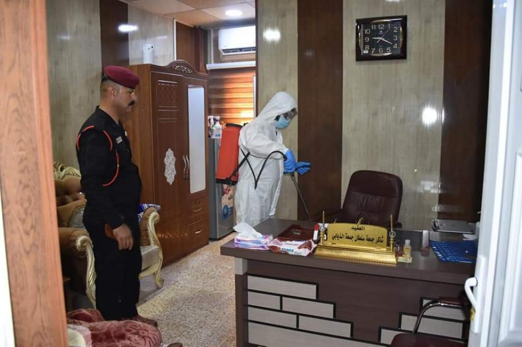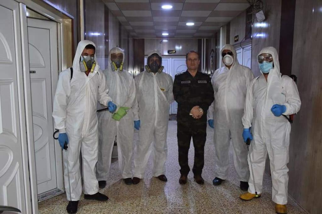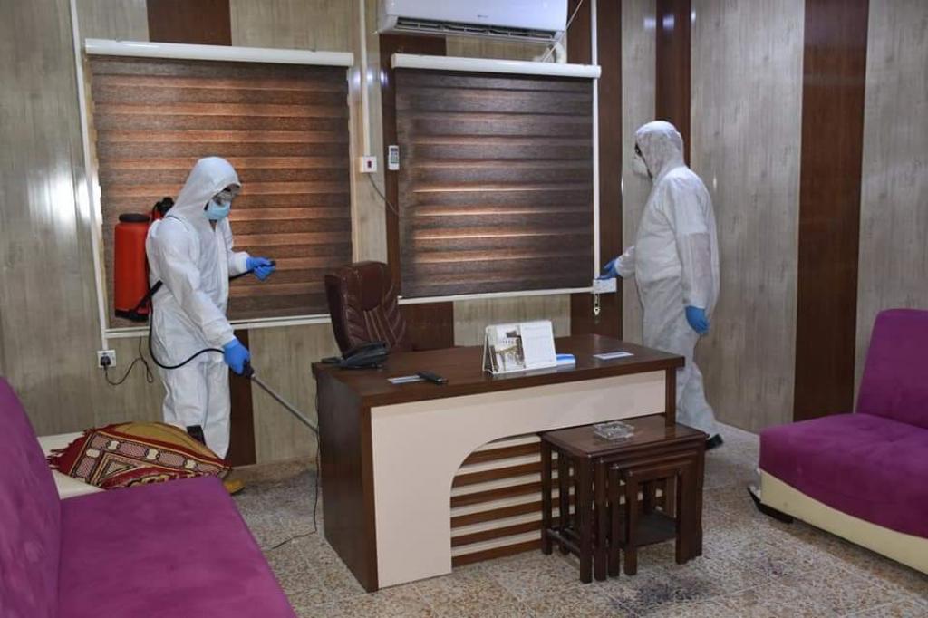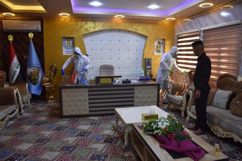 بتوجيه من السيد رئيس جامعة الموصل الاستاذ الدكتور قصي كمال الدين الاحمدي، فريق التعقيم والتعفير لخلية الازمة في الجامعة، يقوم بحملة لتعقيم وتعفير مبنى قسم الشؤون الداخلية والامن التابع لقيادة شرطة محافظة نينوى، اليوم السبت الموافق الحادي عشر من تموز للعام ٢٠٢٠ ..
