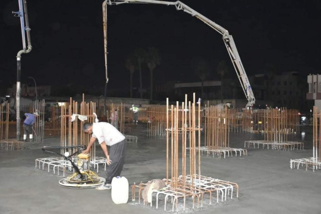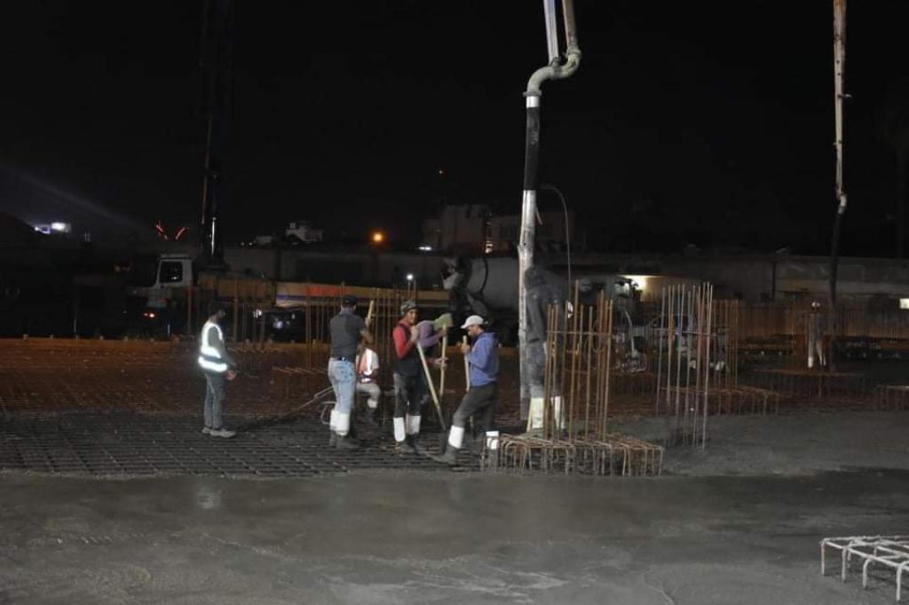 جولة ليلية للسيد رئيس الجامعة لتفقد صب اساسات كلية الهندسة الكهربائية