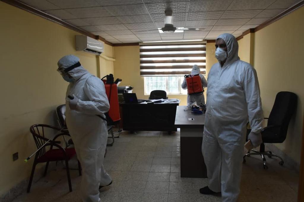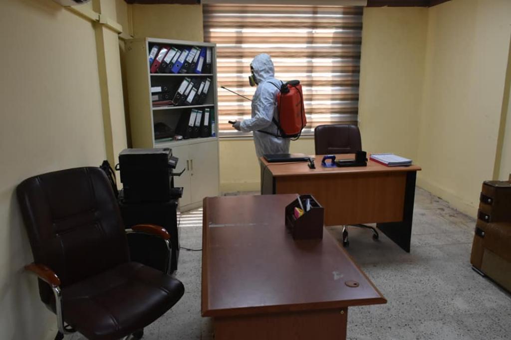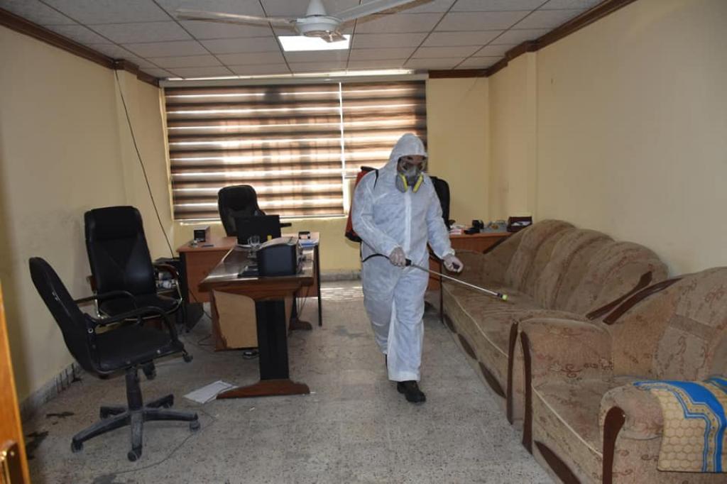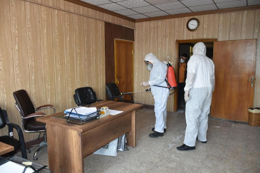 ضمن الانشطة التي تنفذها خلية الازمة المركزية في جامعة الموصل لمكافحة جائحة كوفيد 19 ، اجرى فريق التعقيم والتعفير حملة واسعة لتعقيم وتعفير عدد من المنشآت داخل وخارج الحرم الجامعي منعاً لخطر انتشار فايروس كورونا ، شملت ابنية رئاسة الجامعة ومديرية الامن الوطني ومصرف الرافدين.وقد نفذت هذه الحملة من اجل خلق بيئة آمنة وصحية للكوادر العاملة والمراجعين على حد سواء .
