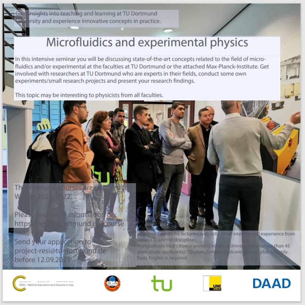 رابط الملف المرفقتدعوكم جامعة الموصل بالتعاون مع جامعة دورتموند الالمانية للتقديم والمشاركة في ورشة الكورسات المكثفة والتي ستقام في جامعة دورتموند لمدة ٥ ايام للتخصصات التالية: