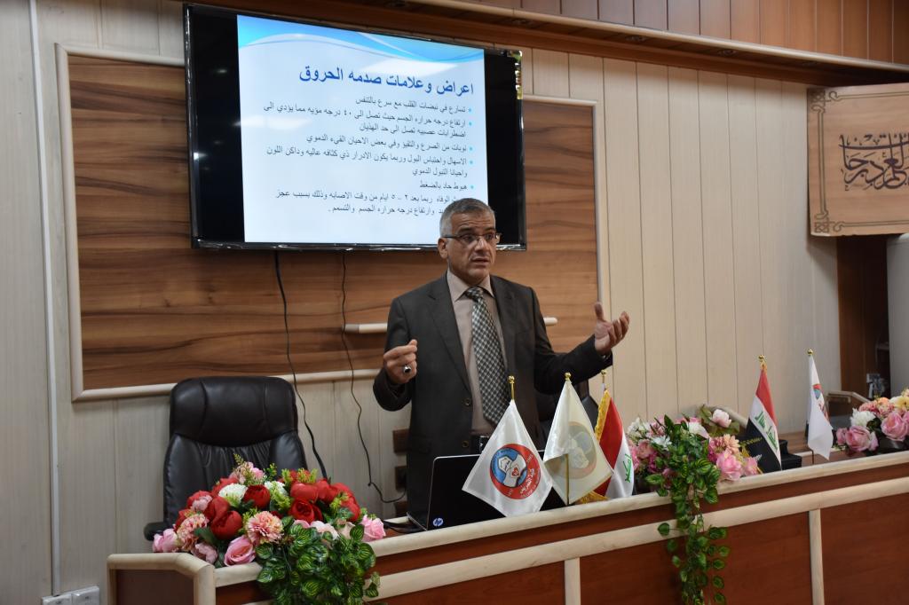 تعزيزاً لدور جامعة الموصل في خدمة المجتمع نظمت كلية التمريض وحدة التعليم المستمر دورة للإسعافات الاولية بالتعاون مع قسم العلوم التمريضية السريرية للمدة من 8-12 اذار 2020 لمنتسبي دائرة كهرباء نينوى شارك فيها (١٥) منتسباً ، حضر جانبا من اعمالها في بومها الرابع السيد مساعد رئيس الجامعة للشؤون العلمية الاستاذ الدكتور منير سالم طه وعميد الكلية وعدد من السادة التدريسيين.
