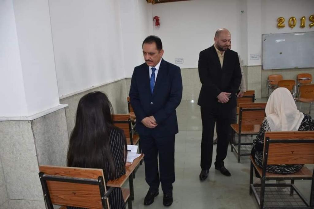 تفقد الاستاذ الدكتور قصي كمال الدين الاحمدي رئيس جامعة الموصل سير العملية الامتحانية للدور الثاني للعام الدراسي 2018 ــ 2019 صباح يوم الثلاثاء الموافق 3 ايلول 2019 اقسام التاريخ والعلوم النفسيةوالتربويةفي كلية التربية للعلوم الانسانية وقسمي علوم البيئة وتقنات البيئة في كلية علوم البيئة و تقاناتها متجولاً بين طلبته وهم يؤدون امتحاناتهم متسائلاً عن طبيعة الاسئلة الامتحانية ومديات ملائمتها للمناهج الدراسية التي يخضع لها الطلبة , واهم الاستعدادات التي سبقت العملية الامتحانية مشدداً على ضرورة توفير الاجواء المناسبة لنجاح سير الامتحانات لتمكين الطلبة من تحقيق النجاح والتفوق بما يخدم الجامعة والمجتمع .